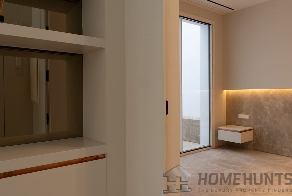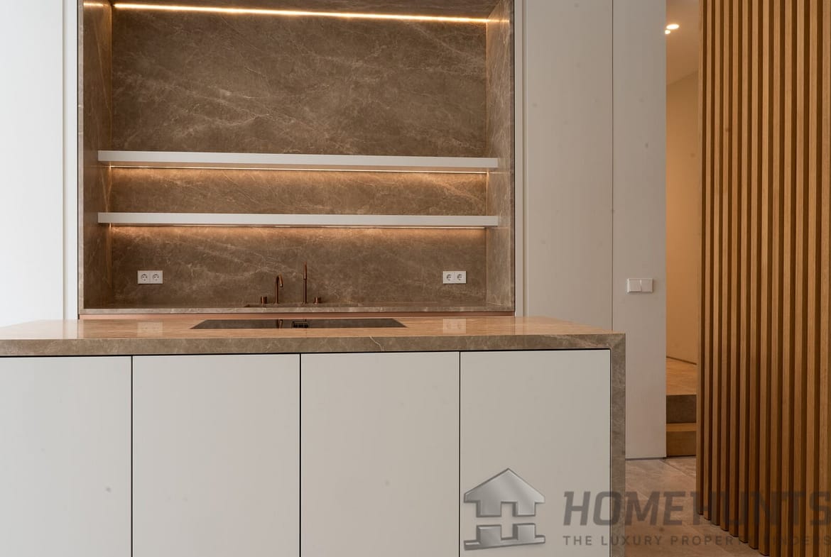 This apartment was created and designed by Estudio de Arquitectura Interior Negre. Only high-quality natural materials were used for the interior and exterior fittings. It has high ceilings, a large living-dining room, a state-of-the-art kitchen and a large terrace where you can dine under the stars. Add the spacious bedrooms and en-suite bathrooms and you have the ideal space for a family or to welcome guests.