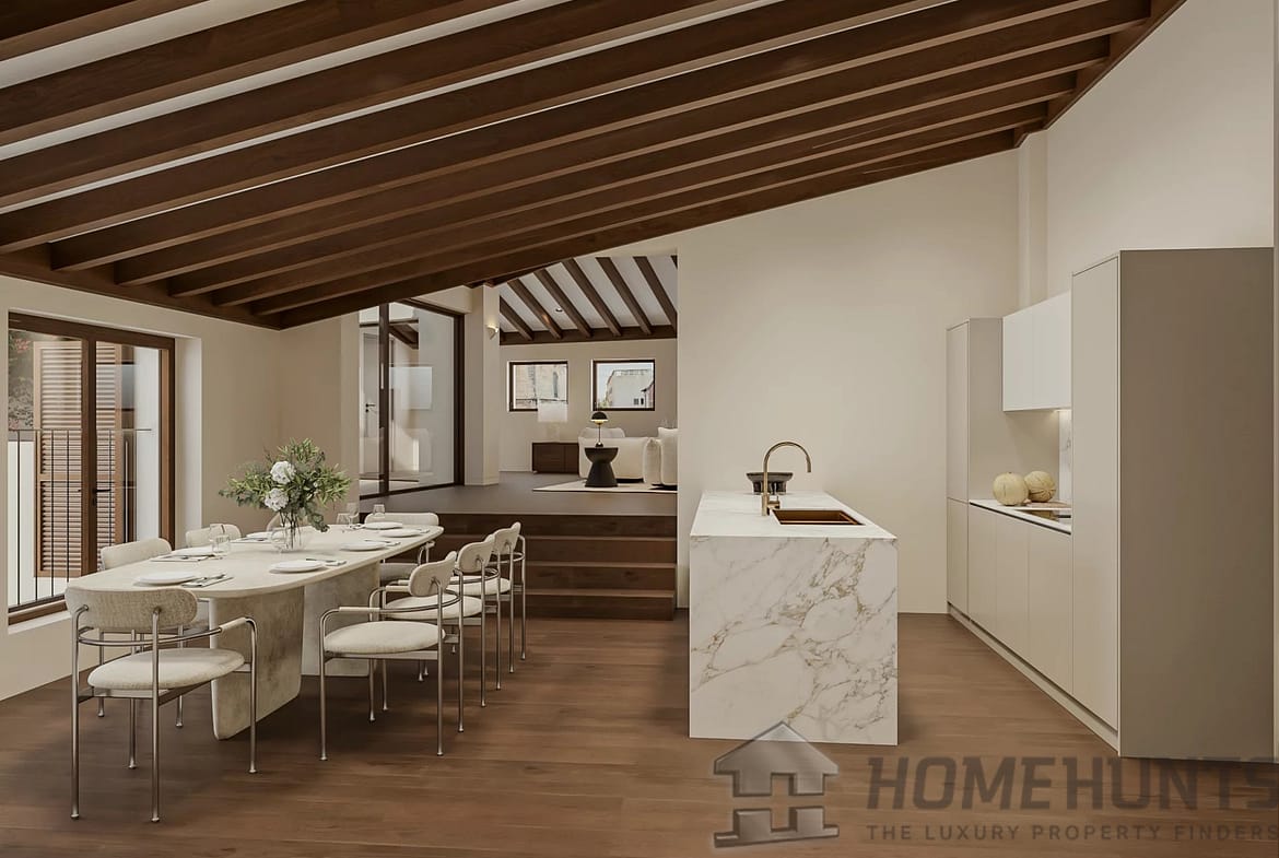 The building is undergoing a comprehensive renovation, with completion planned for September 2026. The project focuses on preserving its history while adapting to modern comfort, style, and high-end living. This second-floor penthouse apartment offers 243 m2 with an open-plan, custom-made designer kitchen featuring Miele appliances, a dining area, and a living room that flows out to the exterior, as well as a cosy 17 m2 terrace. It has four bedrooms, each with an ensuite bathroom and a guest lavatory, a laundry room, and a pantry.