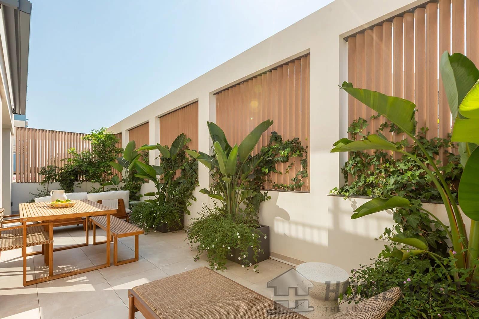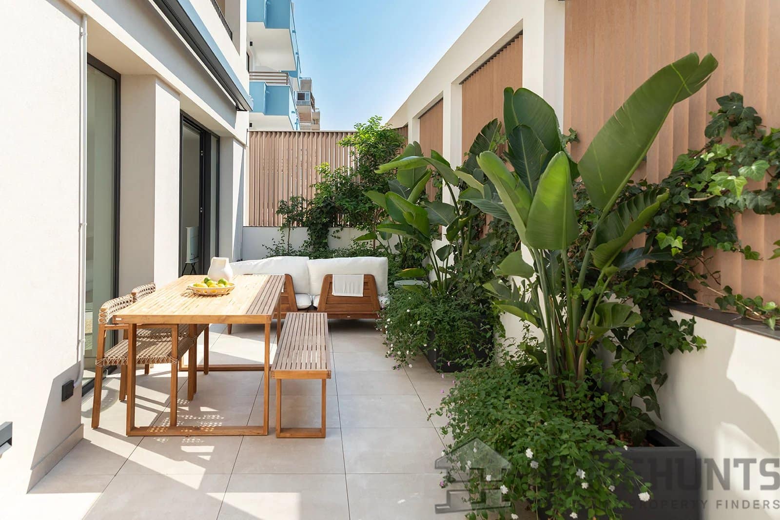 The apartment boasts 106 m2 of interior space with an open-plan layout. The modern kitchen features a central island, premium Miele appliances, and seamless connection to the living and dining area – perfect for entertaining or everyday living.