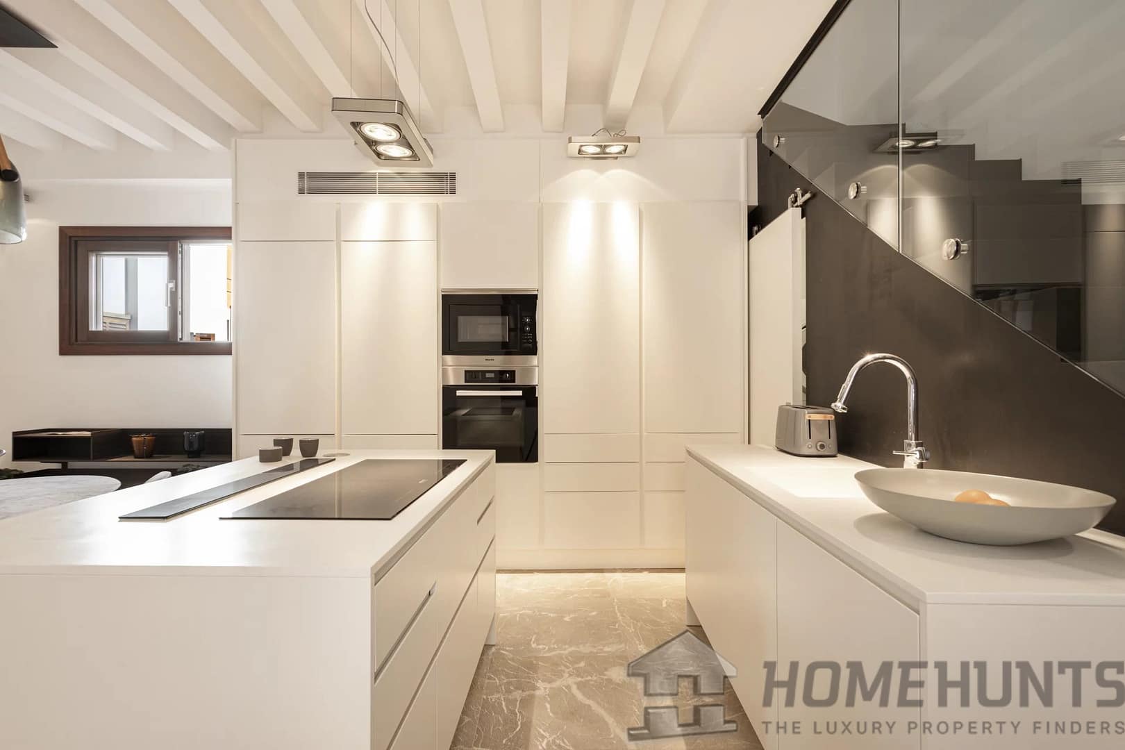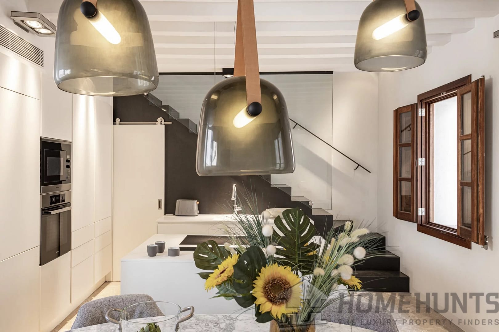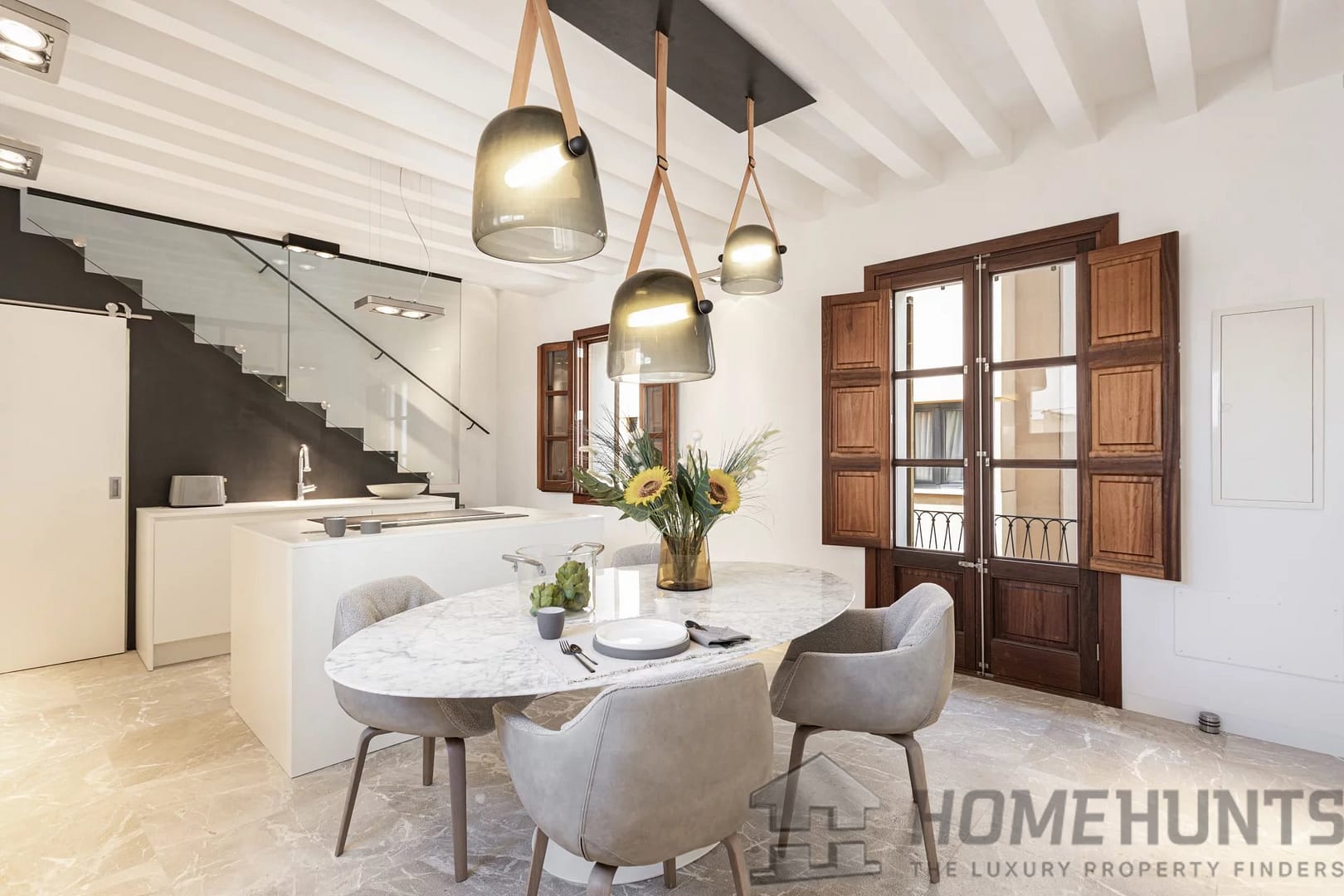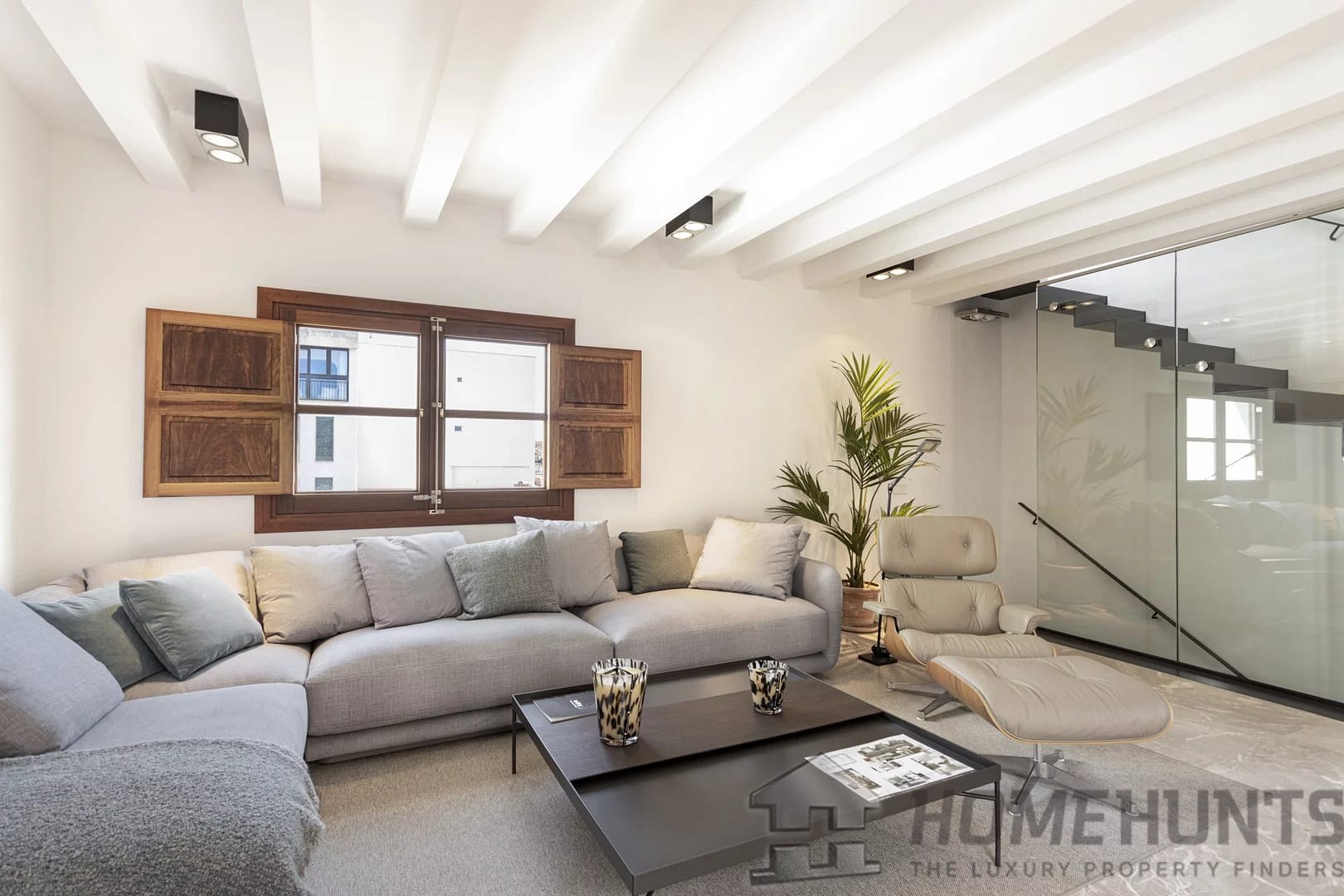 In the very heart of Palma’s Old Town, just steps from Plaíça Banc de l’Oli and a stone’s throw from the emblematic Plaza Cort, lies this newly created duplex penthouse – an architectural gem that blends the city’s historic essence with a contemporary aesthetic of clean lines and noble materials.