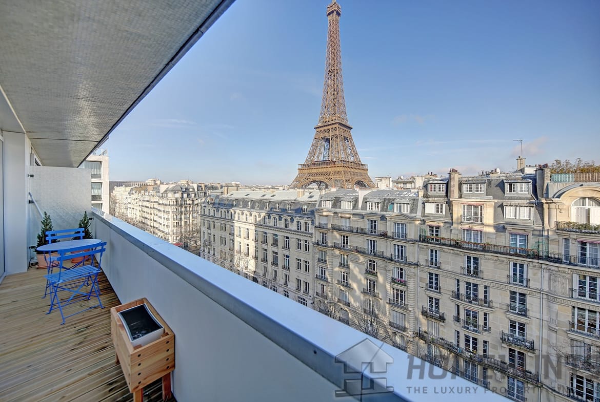 EIFFEL TOWER. The Eiffel Tower is in your living room! On the 9th floor of a beautiful luxury building from 1968, with marble common areas, we invite you to discover this magical view of the Iron Lady, symbol of Paris. You can almost touch it with your finger!
