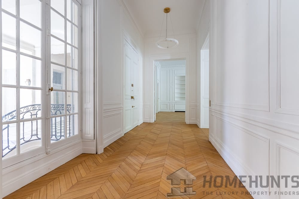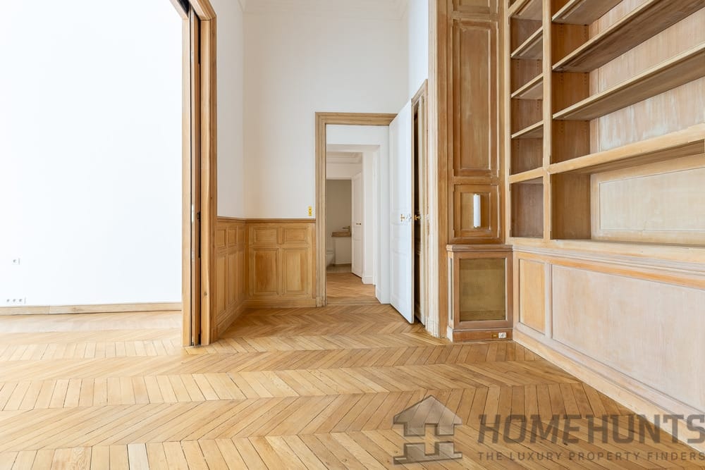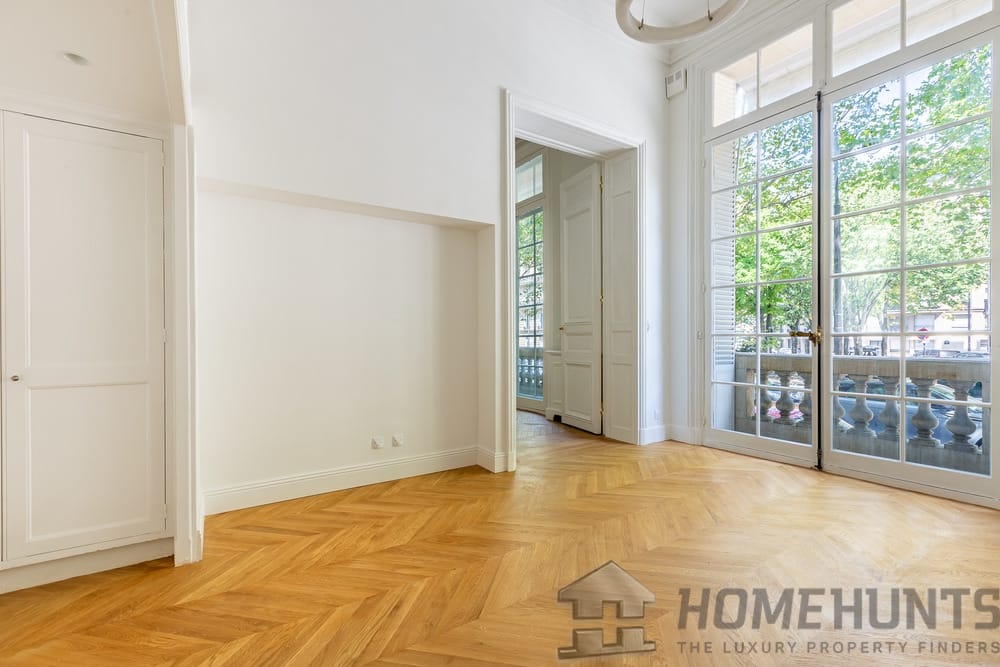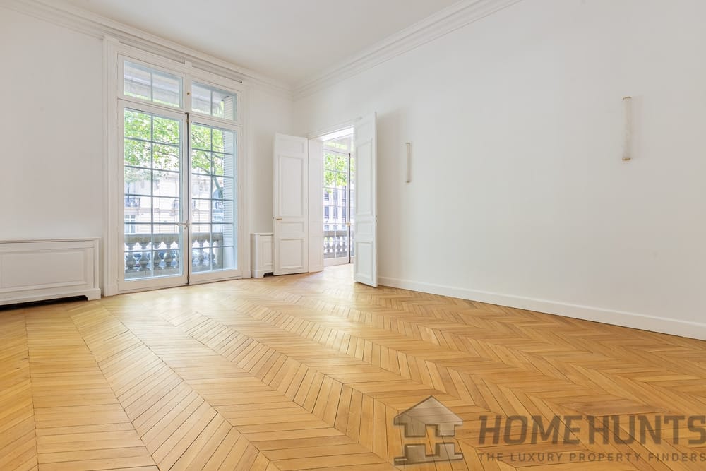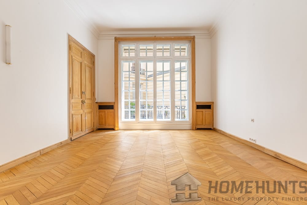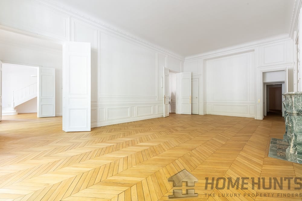 Magnificent apartment of 314.93 (Carrez law) completely renovated with quality services on the raised ground floor in a luxury Haussmann building with exceptional common areas.