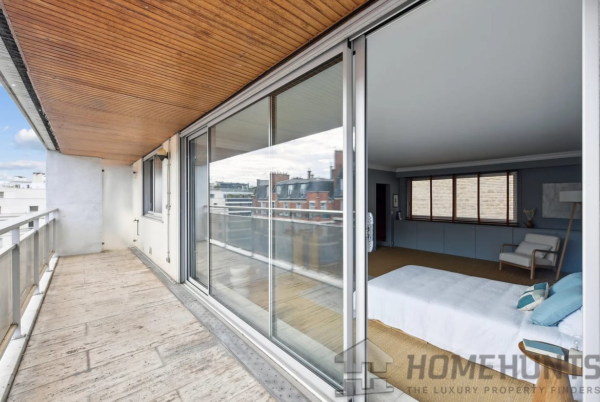 Just a stone’s throw from the schools and shops of rue Jean de la Fontaine, a sunny 160 m2 family duplex apartment in good condition, located on the 6th and 7th floors with 36 m2 of wide balconies of a semi-recent building with caretaker.