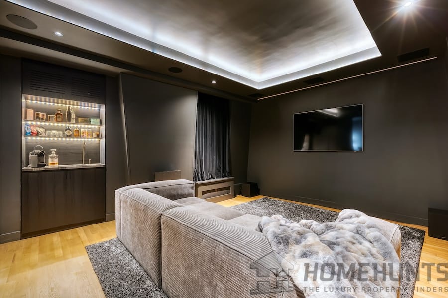 On the upper floor, there is a magnificent home cinema with its own bar area.