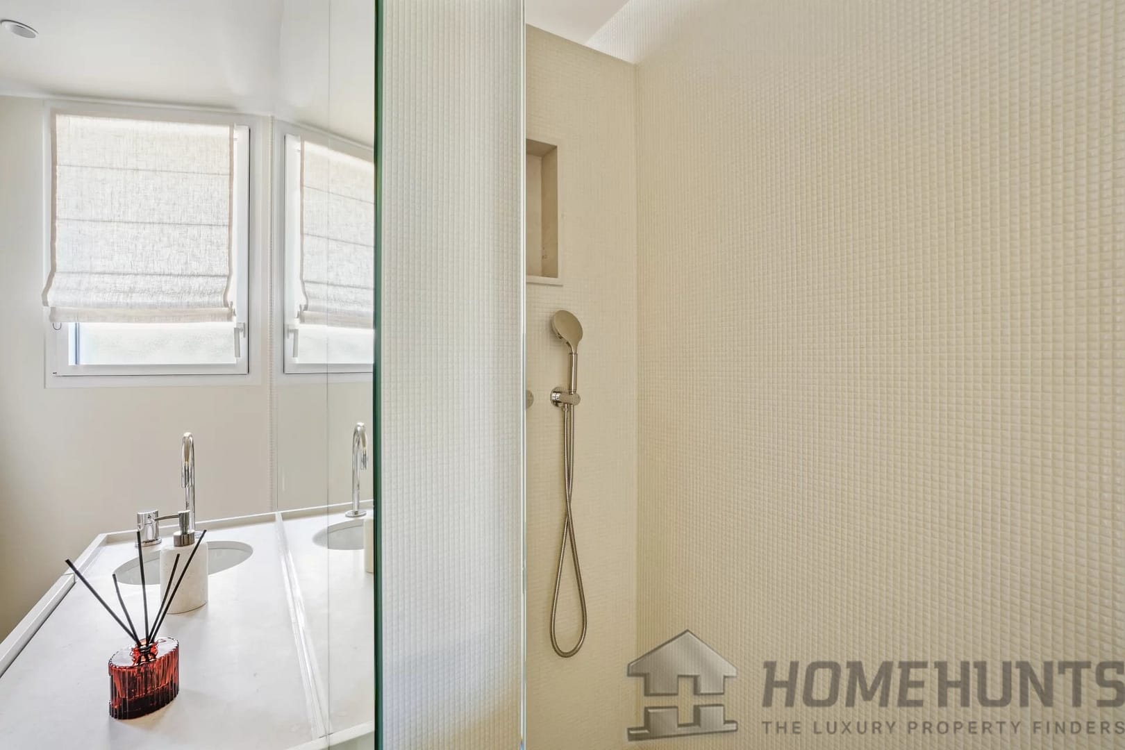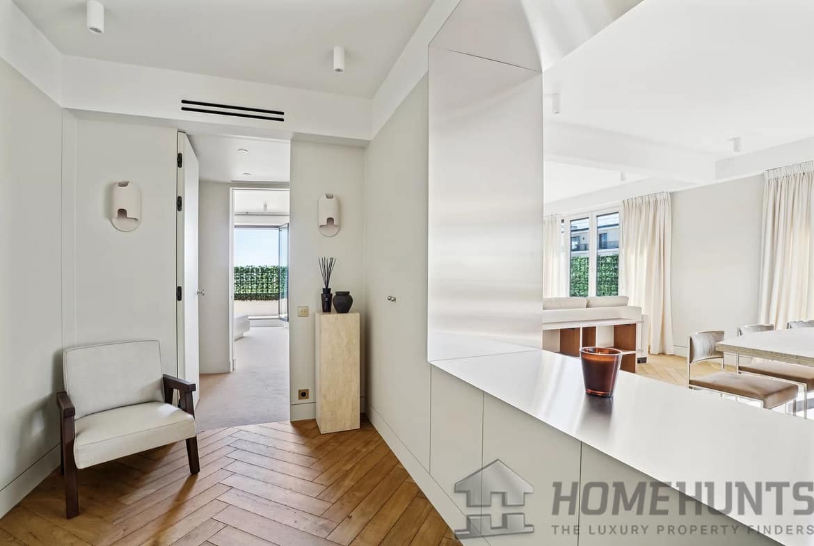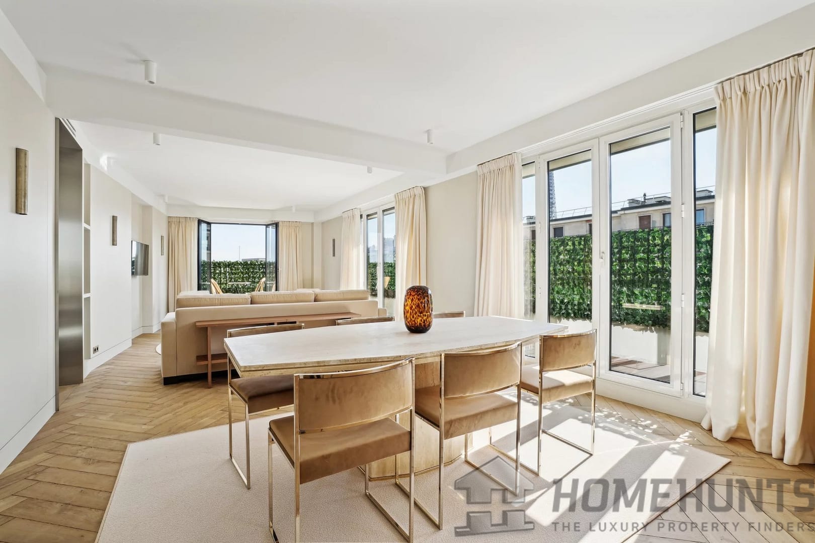 Benefiting from triple exposure, quality materials and fully air-conditioned, it comprises a beautiful entrance hall, a 56m2 reception room with top-of-the-range open kitchen opening onto a 26.8m2 balcony with unobstructed views of the emblematic monuments of Paris and surrounding the entire apartment.