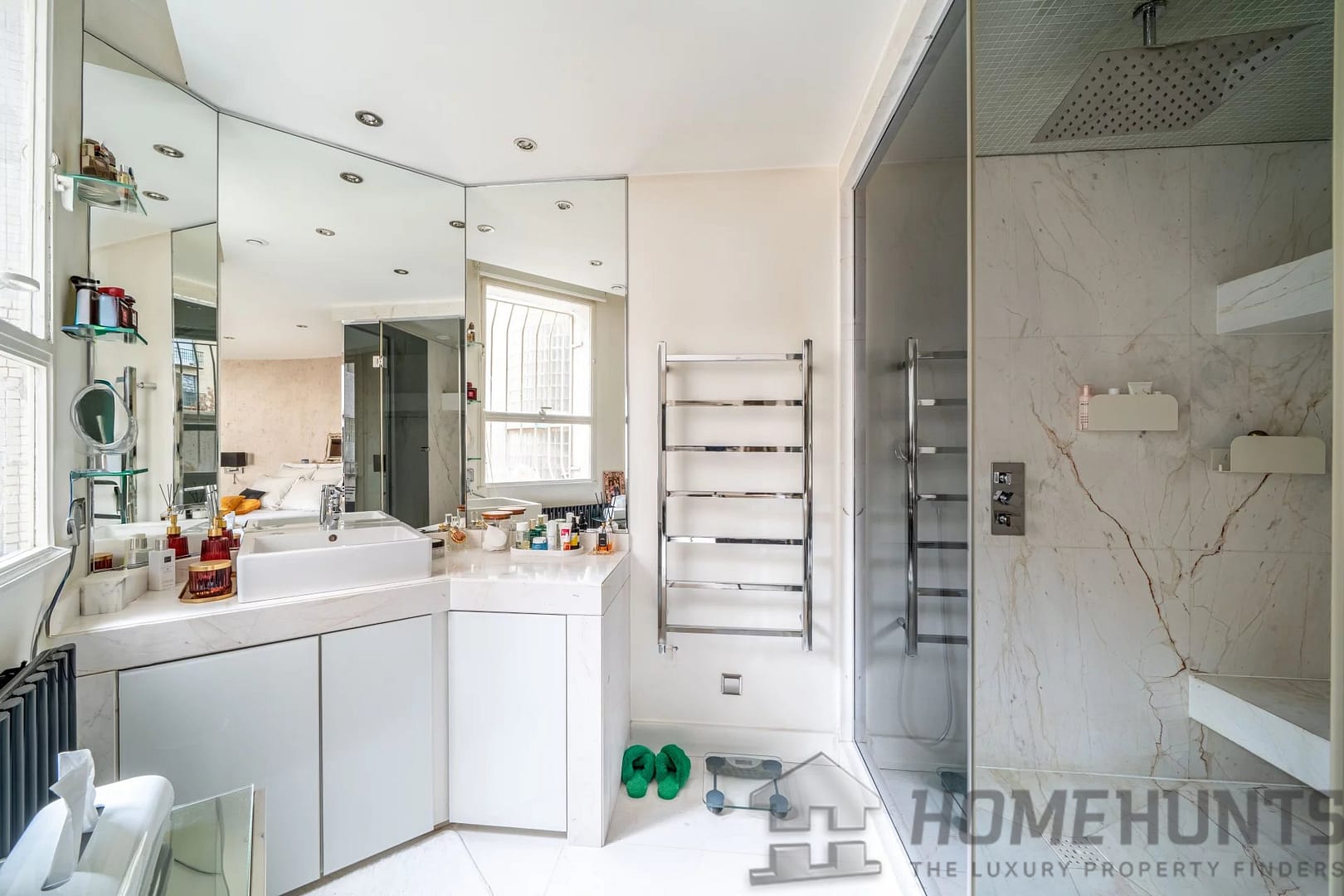 The sleeping area includes a large bedroom with a private bathroom and a very generous dressing room, providing exceptional everyday comfort.