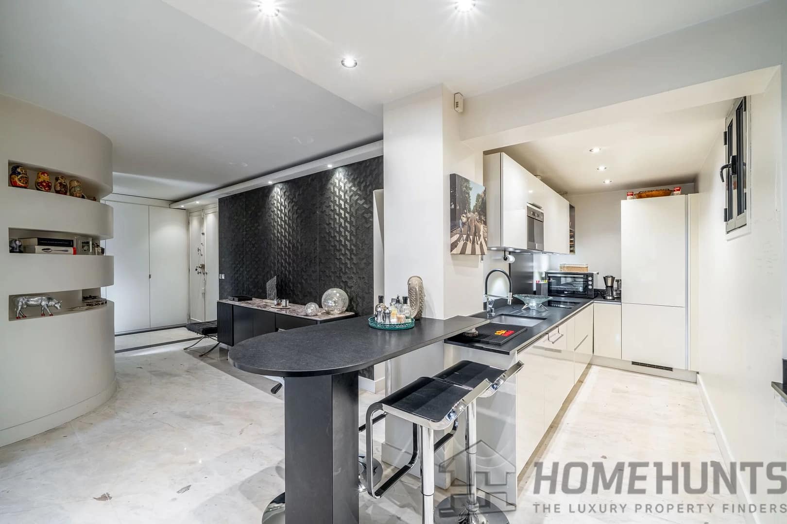 The apartment benefits from high ceilings, a refined atmosphere, and a highly functional layout, rare for a two-room apartment of this calibre.