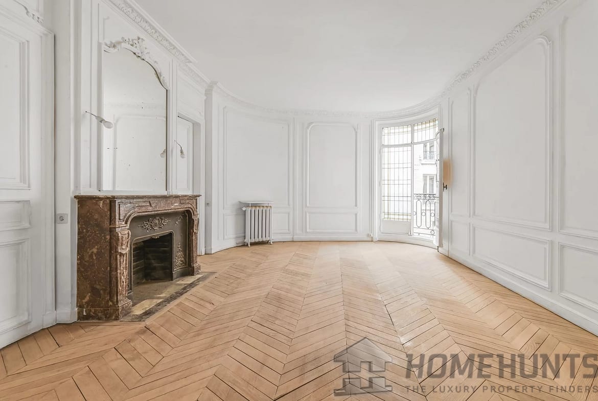 Bourgeois-style features with herringbone parquet flooring and original mouldings.