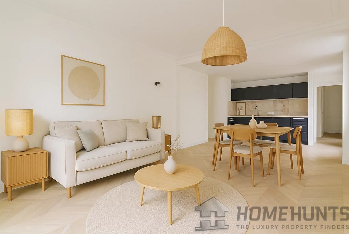 Recently renovated, the well-appointed apartment comprises a large reception room with fully-equipped open-plan kitchen, dining room and living room.