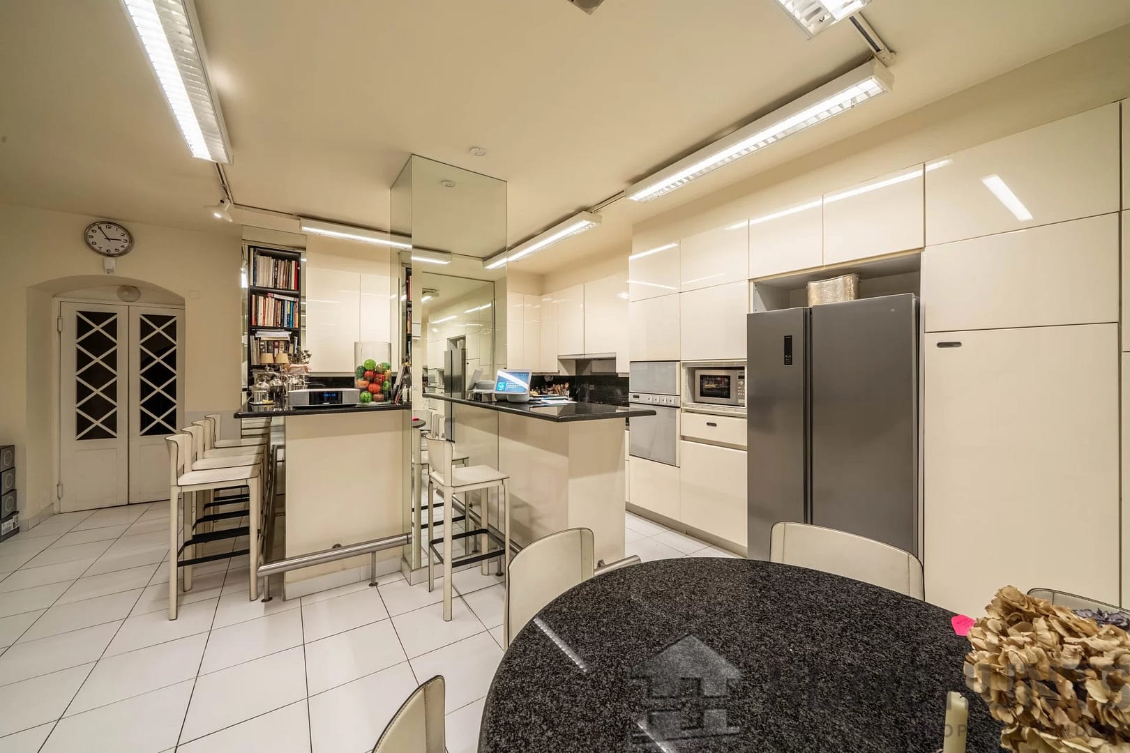 On the garden level, a large family kitchen and dining room, laundry room and storeroom add a resolutely practical dimension to everyday life. This level is also accessible by staircase or elevator, ensuring absolute comfort.