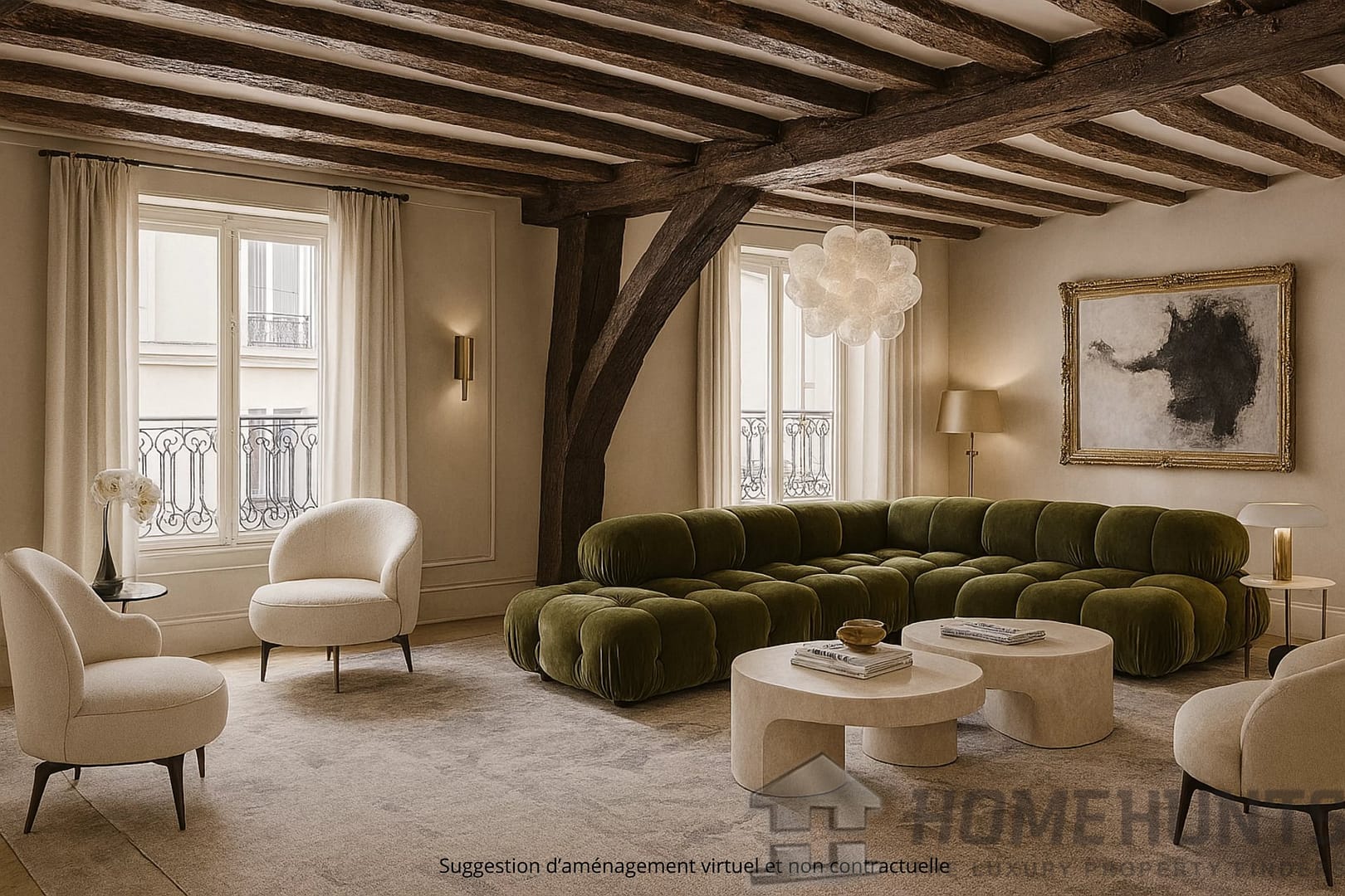 Ideally located in the heart of the Montorgueil district, renowned for its lively atmosphere and gourmet food shops, this 89.80 m2 through-apartment is situated on the fourth floor of a period building with a lift.