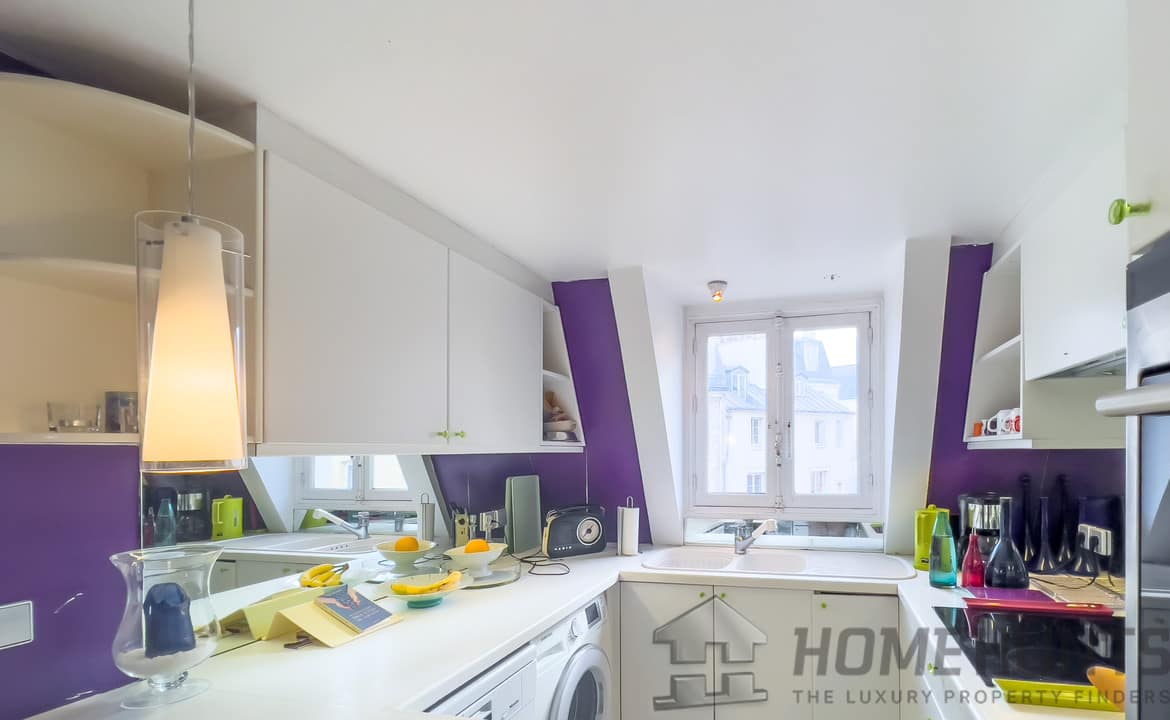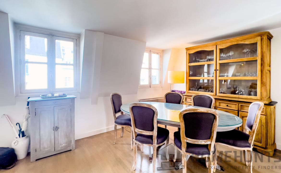 Close to the Pantheon, on the 4th & 5th floors (top floors) of a modernised 18th-century building with lift, this duplex apartment feels like a house, with beautiful views over the rooftops and exceptional natural light thanks to its 2 exposures.