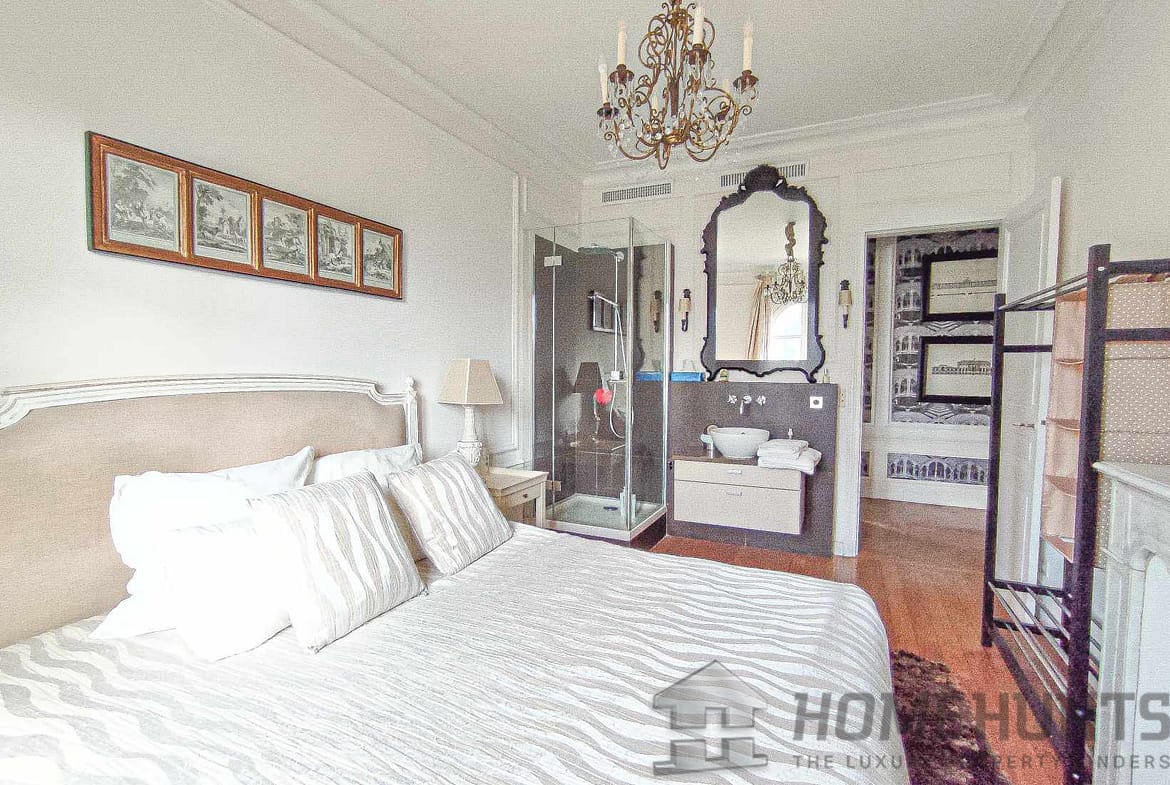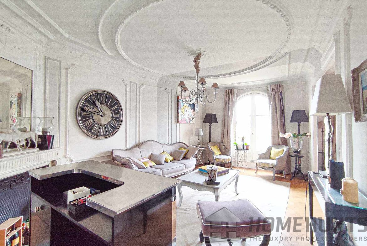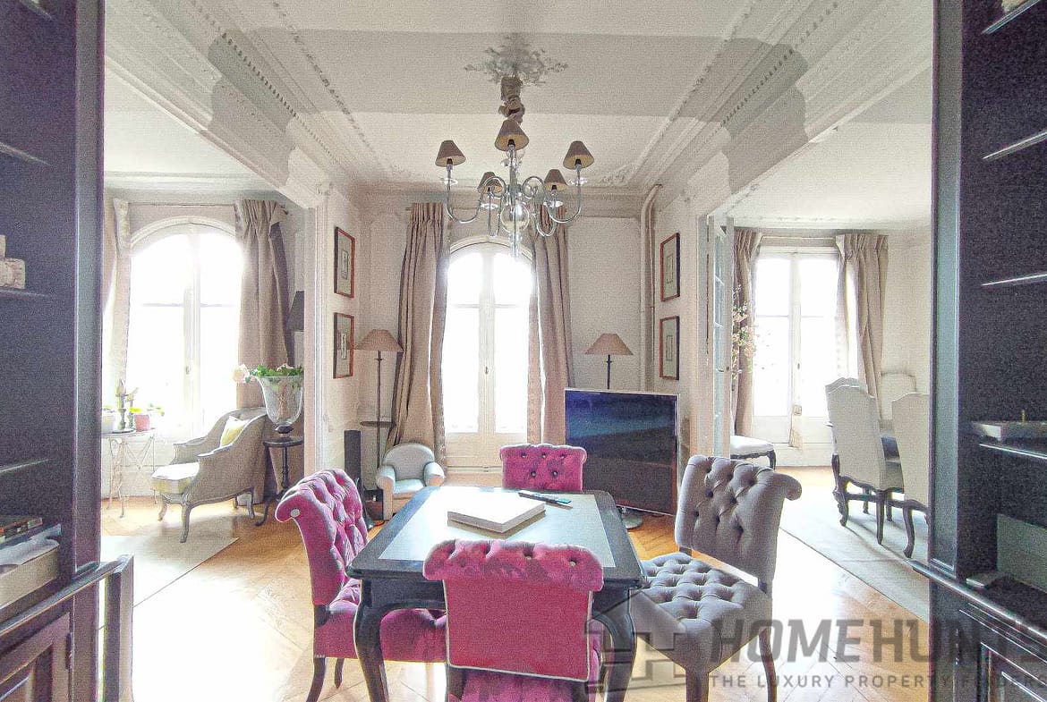 The apartment, in excellent condition, benefits from a neat decoration, is air-conditioned, enjoys all the charm of the old with parquet flooring, mouldings and fireplaces, 2.80 meters high ceilings and balconies with stone balusters.