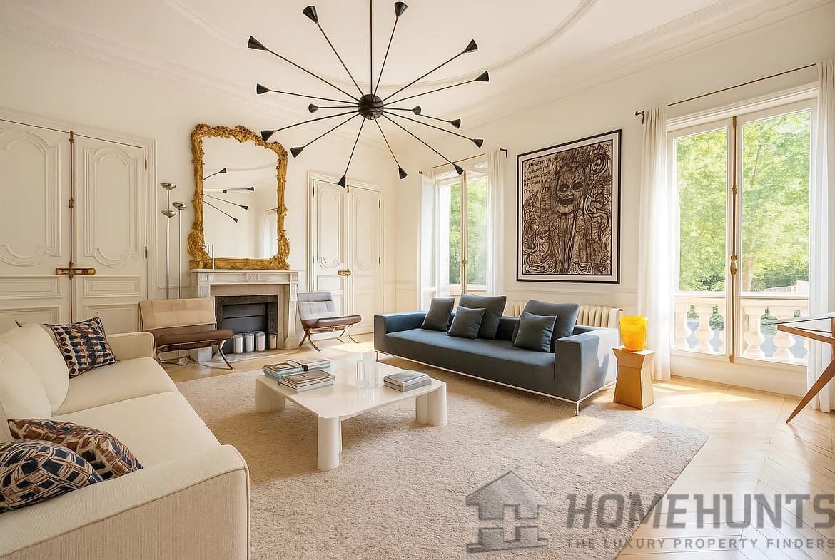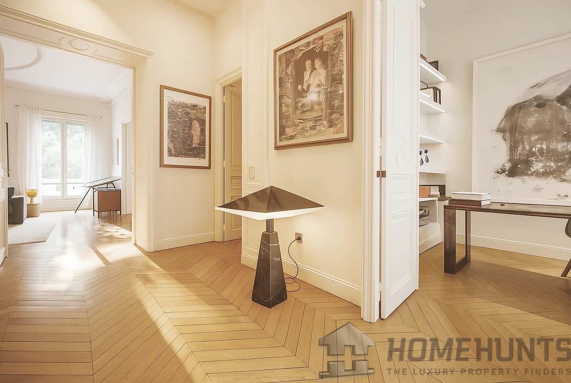 Housed within a distinguished Haussmannian building, this residence embodies the full splendour of Parisian elegance. With a surface area close to 250 m2, it boasts a sequence of grand reception rooms in “enfilade”, facing the gardens, with ceiling heights exceeding 4 metres. Original parquet flooring, period mouldings, and sweeping views over the Luxembourg Gardens combine to create an atmosphere both noble and timeless.
