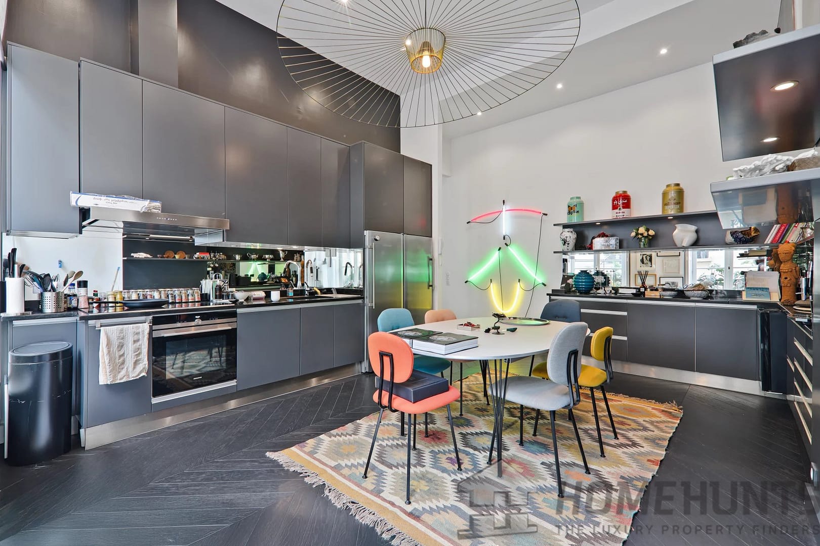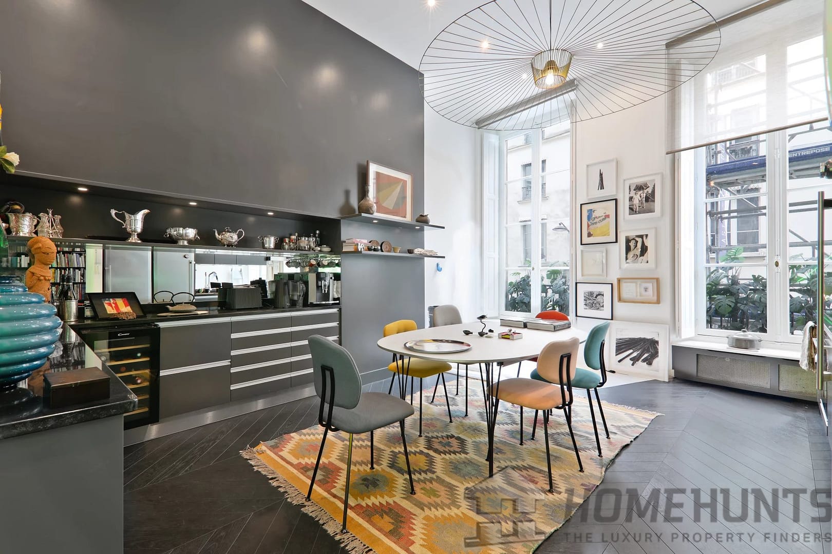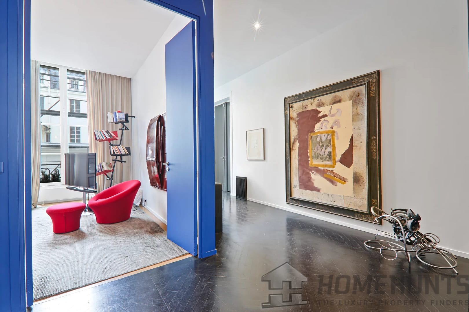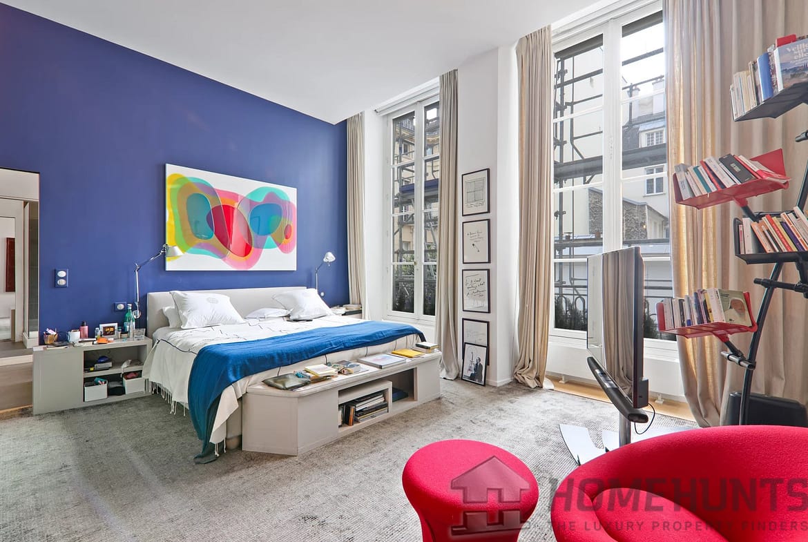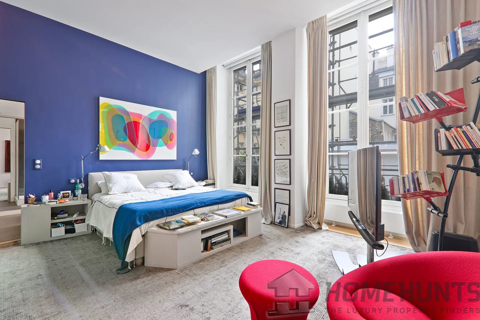 Owned by contemporary art enthusiasts, this unique apartment boasts 4-metre high ceilings and 7 windows overlooking the chic Rue de Tournon.