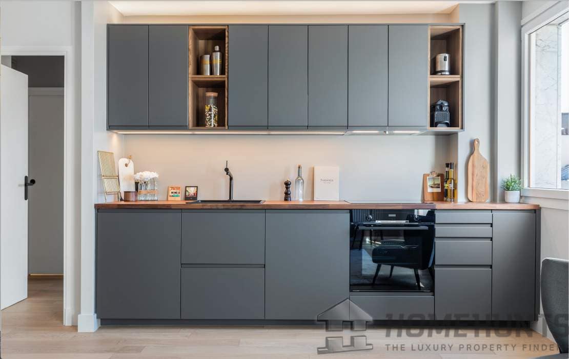 Accommodation includes a large living room with open kitchen beautifully presented with a very smart modern feel, a bedroom with en suite bathroom, a guest toilet. Gas collective heating.