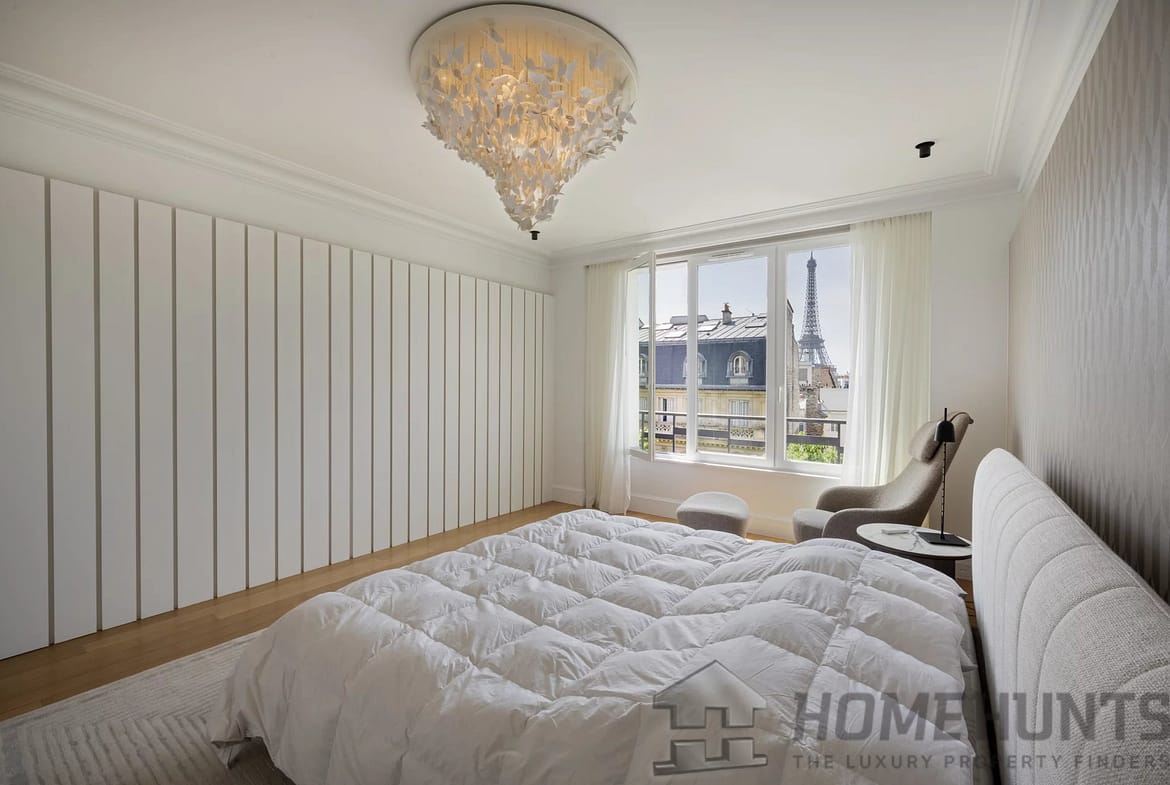 – A lavish master suite and a second generous master bedroom, both enjoying partial Eiffel Tower views that serve as a daily reminder of the residence’s remarkable setting.