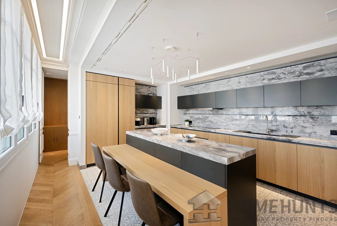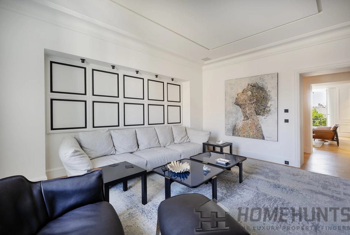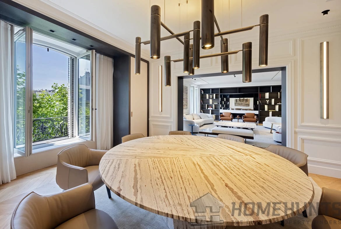 – A splendid double living room, where generous windows bathe the space in light and frame uninterrupted views of the iconic Eiffel Tower, inviting the magic of Paris indoors.