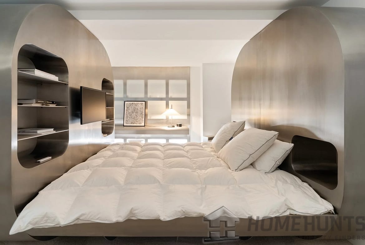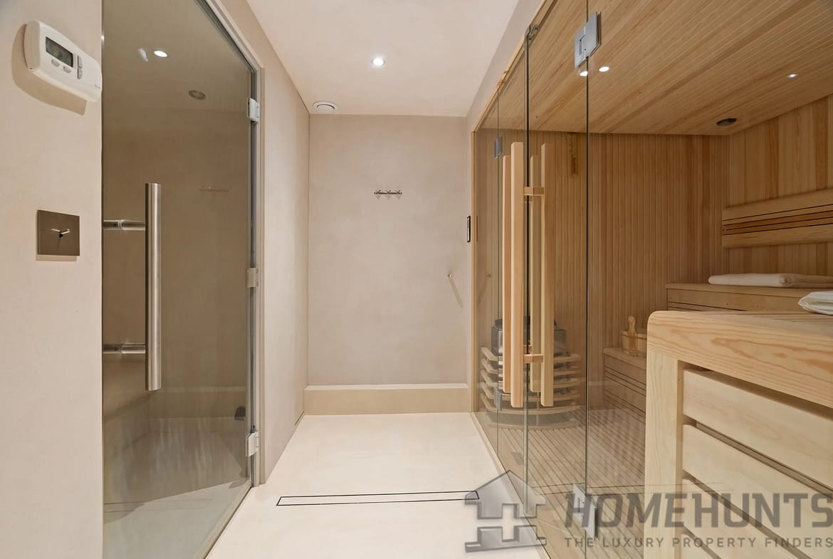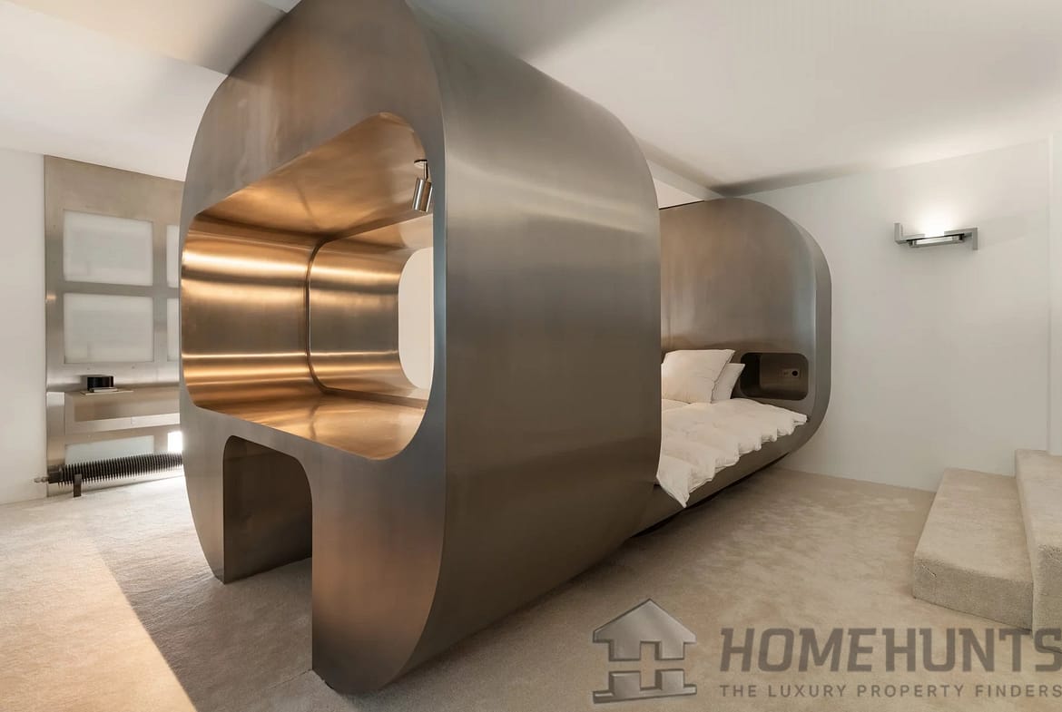 The result is spectacular: a suspended, almost unreal atmosphere where every detail counts. Two bedrooms, including a magnificent suite, a huge dining room, a professional kitchen, a bar, a wine cellar, a yoga room, a sauna, a hammam… All fully furnished and decorated with bespoke pieces, in a subtle balance between wood and steel, soft curves and bold lines.
