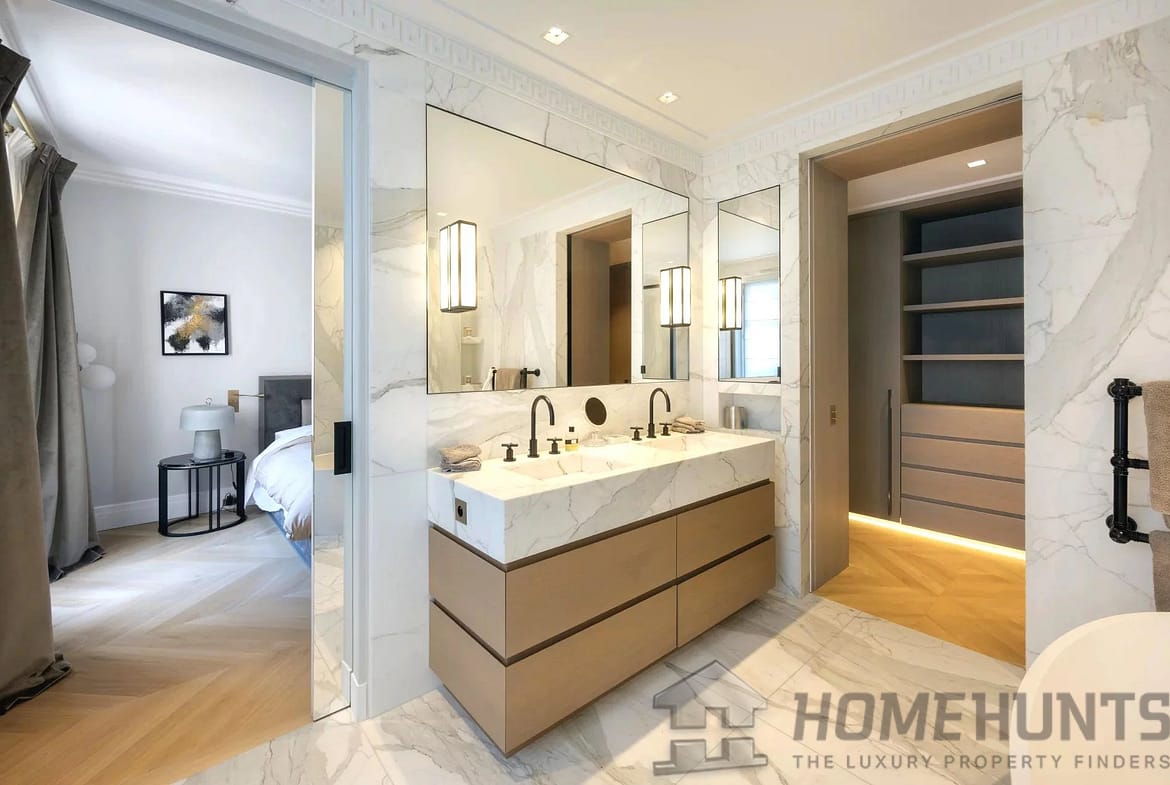 Situated on the prestigious Rue Marbeuf, in the heart of Paris’s illustrious Triangle d’Or, this exceptional 232 m2 residence has been meticulously refurbished to the highest standards, combining classic Haussmannian elegance with contemporary sophistication.