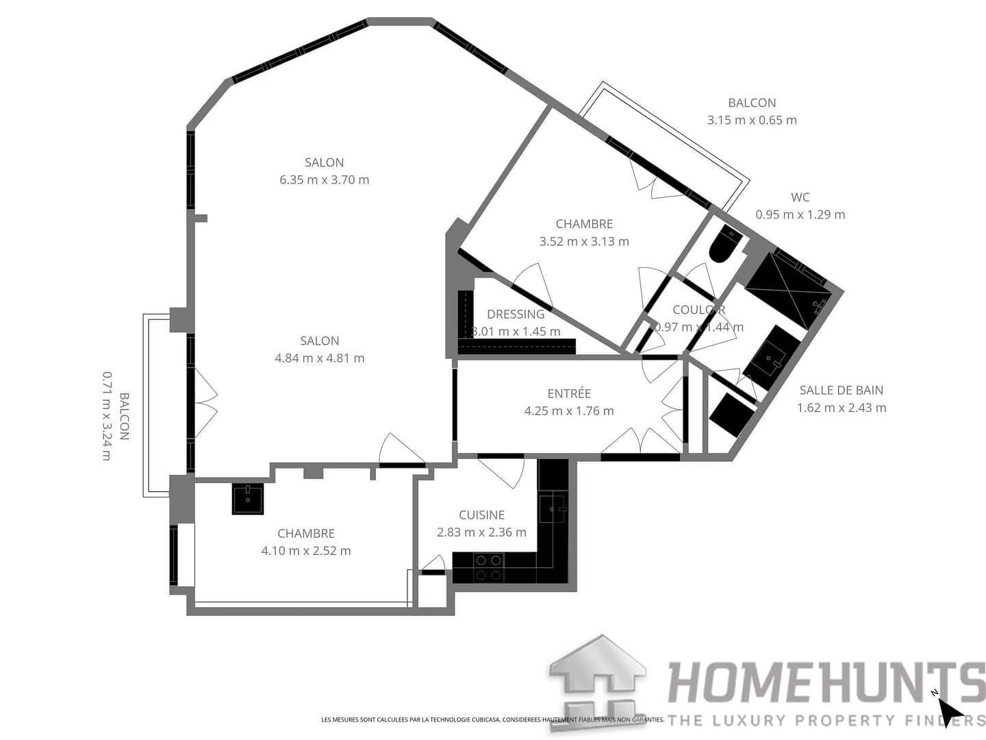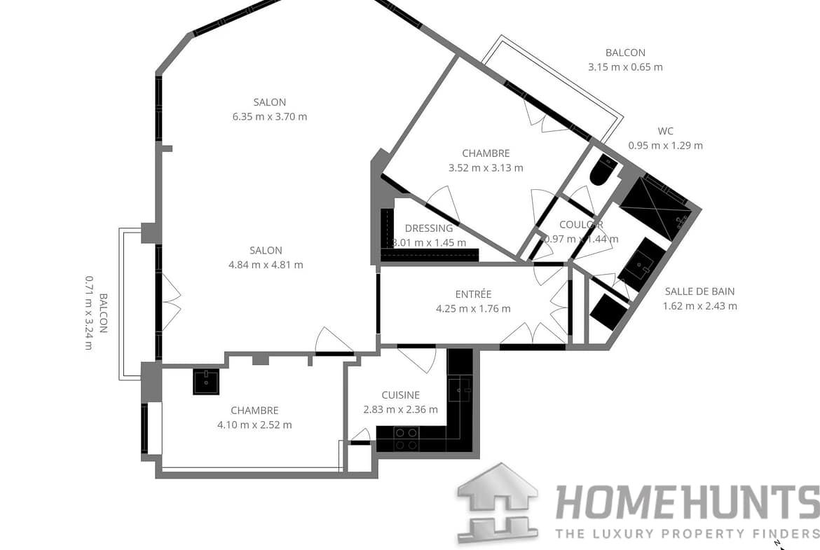 Outdoor spaces: two continuous balconies totaling 4.4 m2.