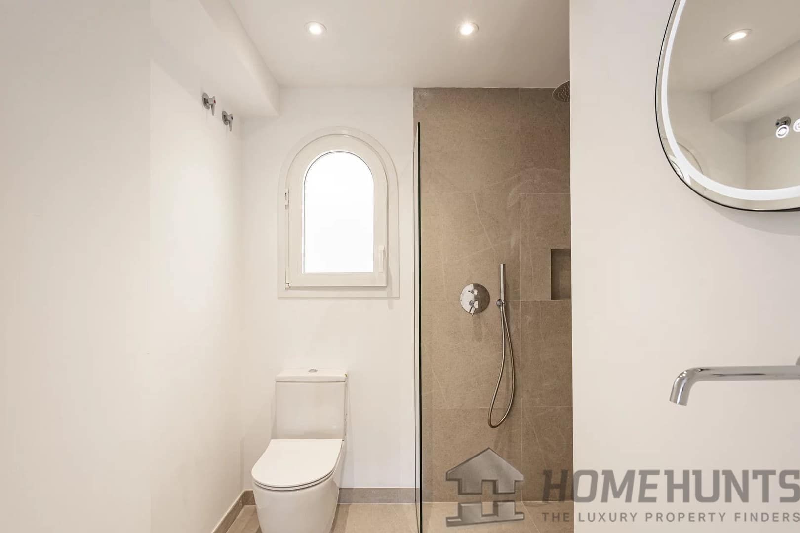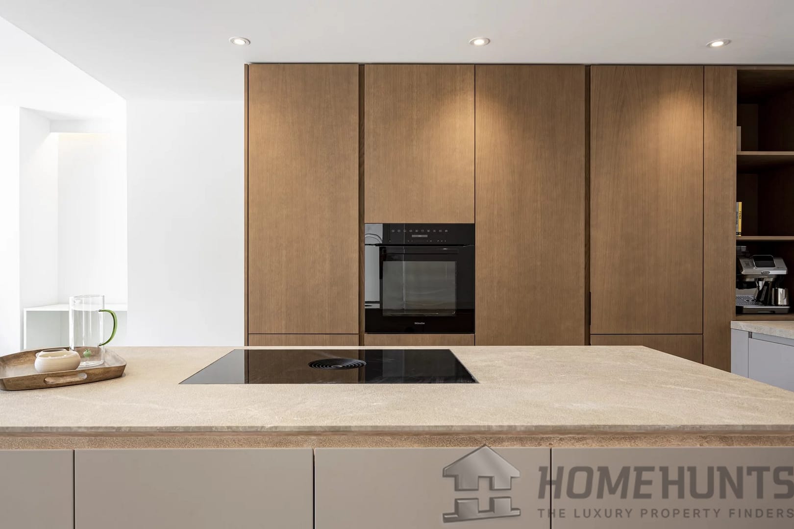 The large open living-dining area and kitchen are bathed in natural light and connect effortlessly to the terrace, creating the perfect setting for entertaining or relaxing while enjoying panoramic coastal vistas.