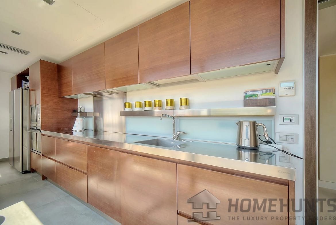With 4 levels, it totals 8 rooms. On the first level the main entrance as well as a fully equipped independent kitchen, a spacious living / dining room opening onto the terrace of approximately 130m2, a large dressing room and a guest toilet.