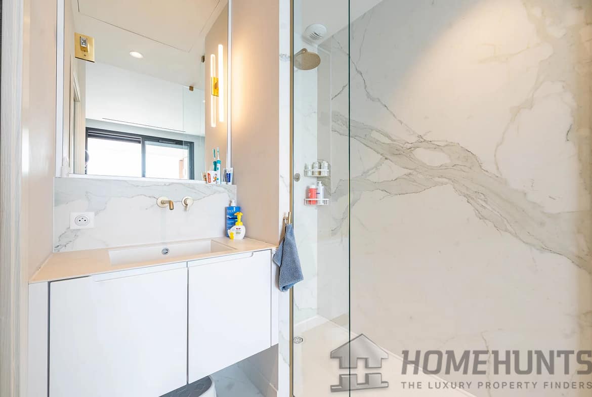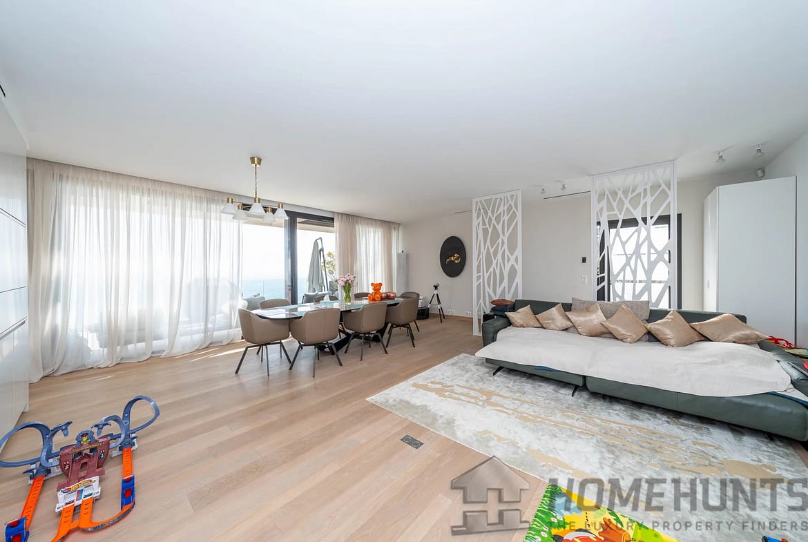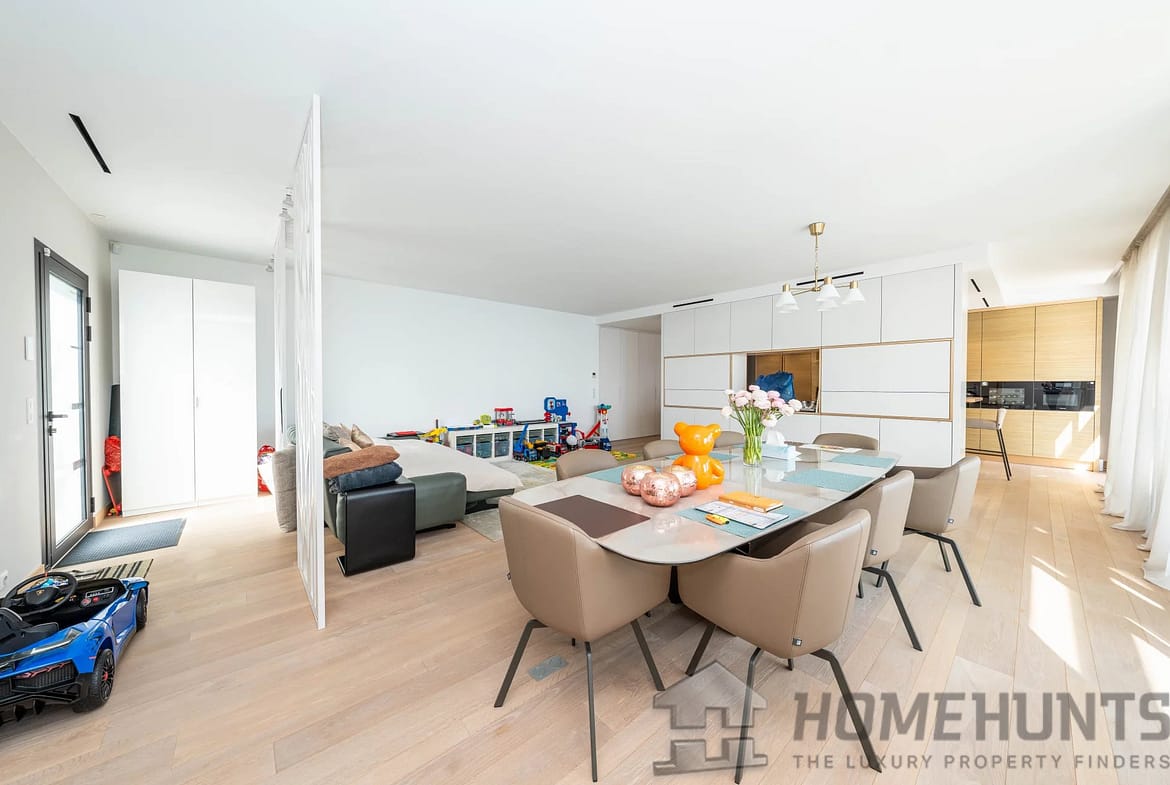 Covering an area of around 150 m2, it comprises an elegant entrance hall, a bright living and dining room, a fully equipped kitchen, a bedroom with bathroom and toilet, a master bedroom with bathroom and dressing room, a guest toilet, a laundry room and a superb terrace.