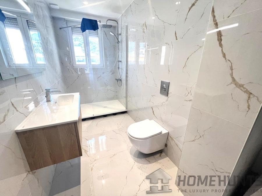 The property opens onto two generous south-facing terraces—one of approx. 20 m2 and another of 28 m2—perfect for soaking in uninterrupted views of Cap Martin, the Italian border, and the open sea. Inside, the apartment features: