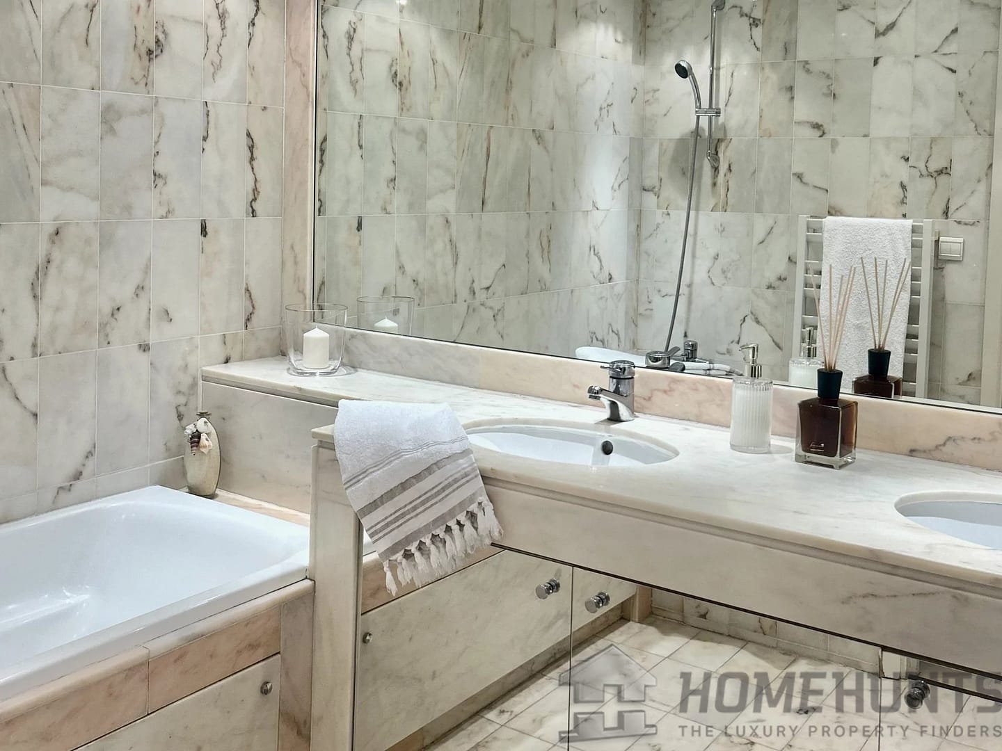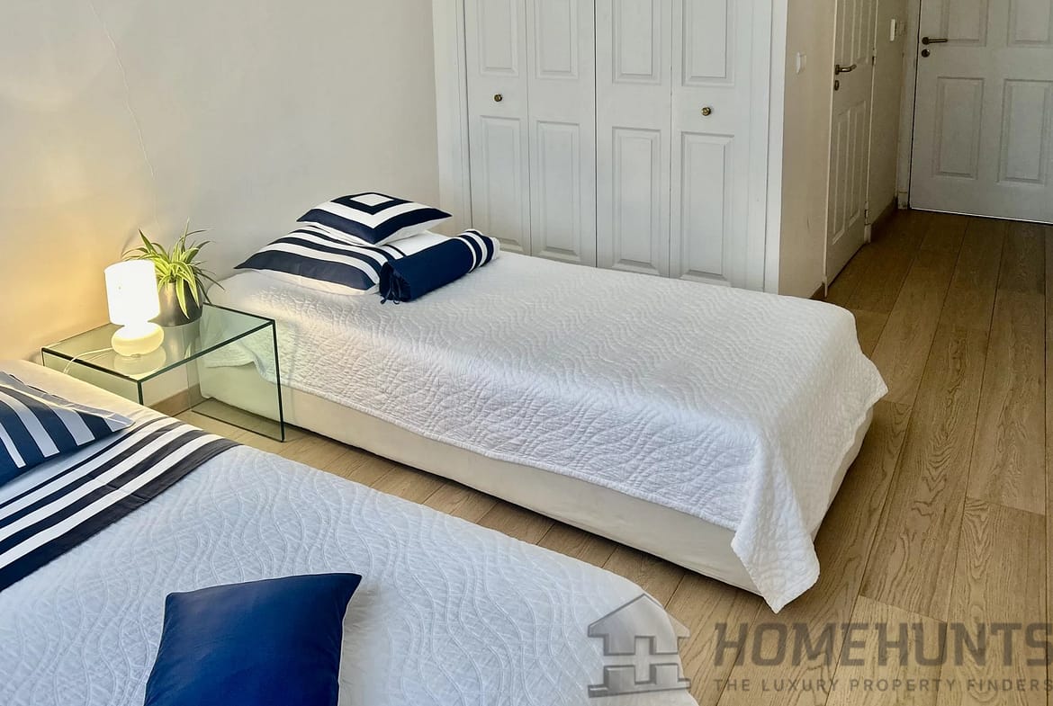 The sleeping area comprises three comfortable bedrooms, each with its own bathroom or shower room, guaranteeing privacy and comfort for the whole family.