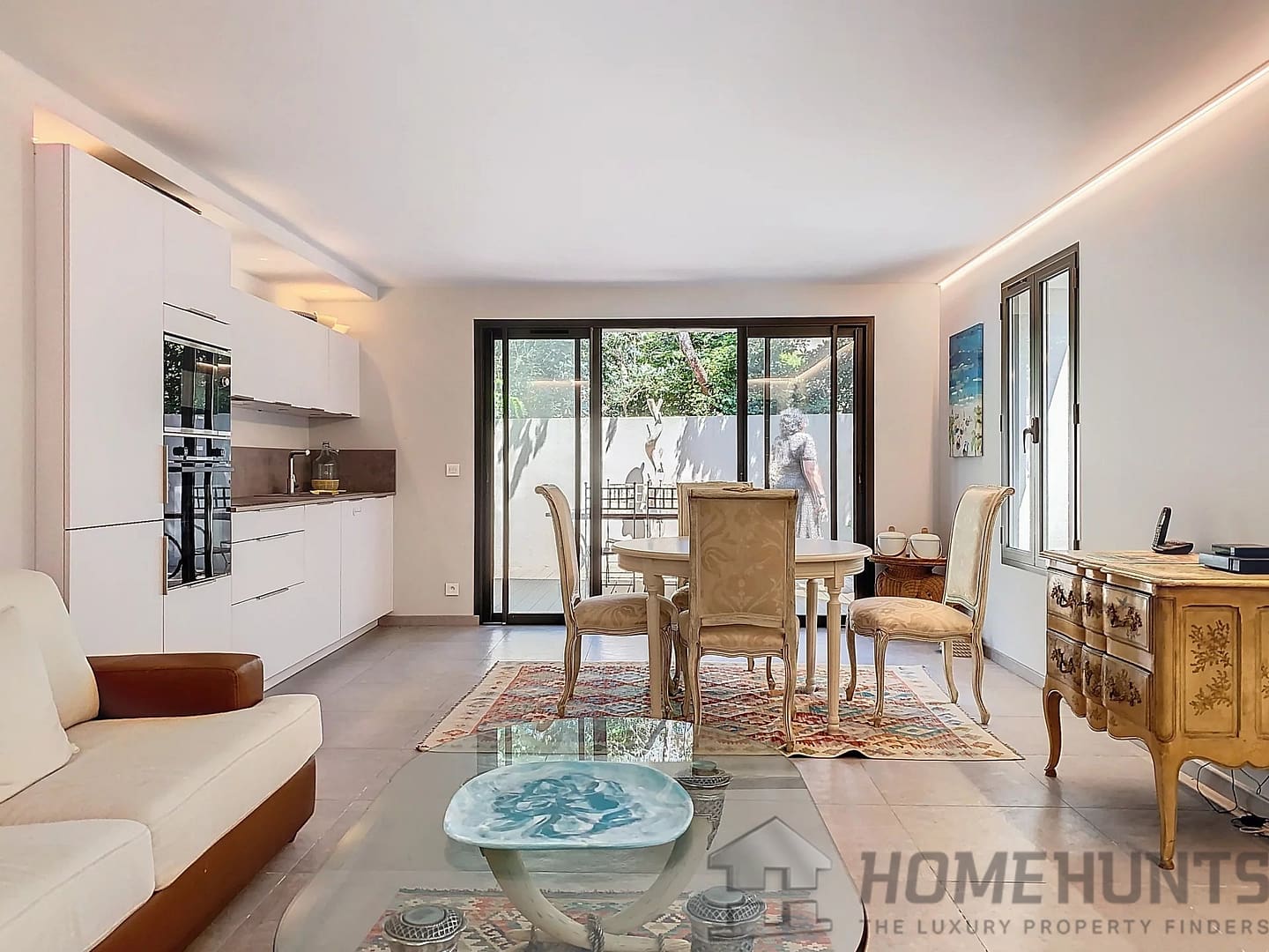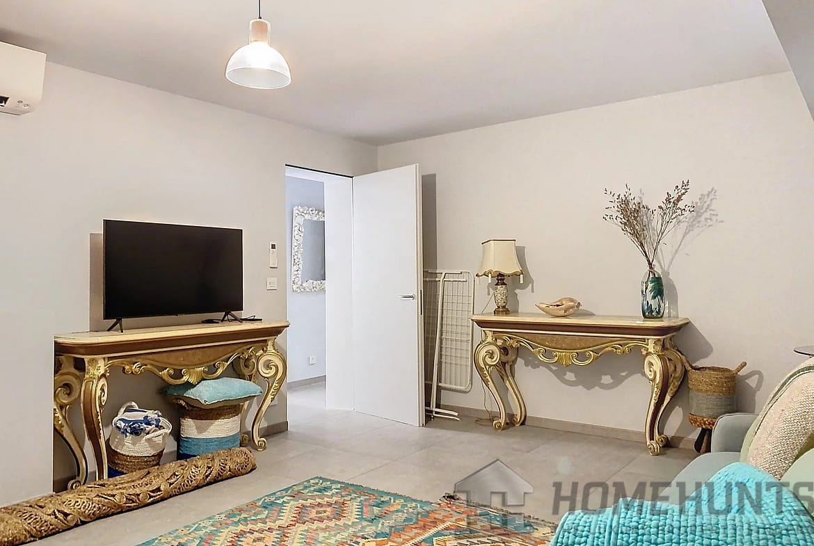 – Spacious 32 m2 living room with open-plan kitchen opening onto the terrace,