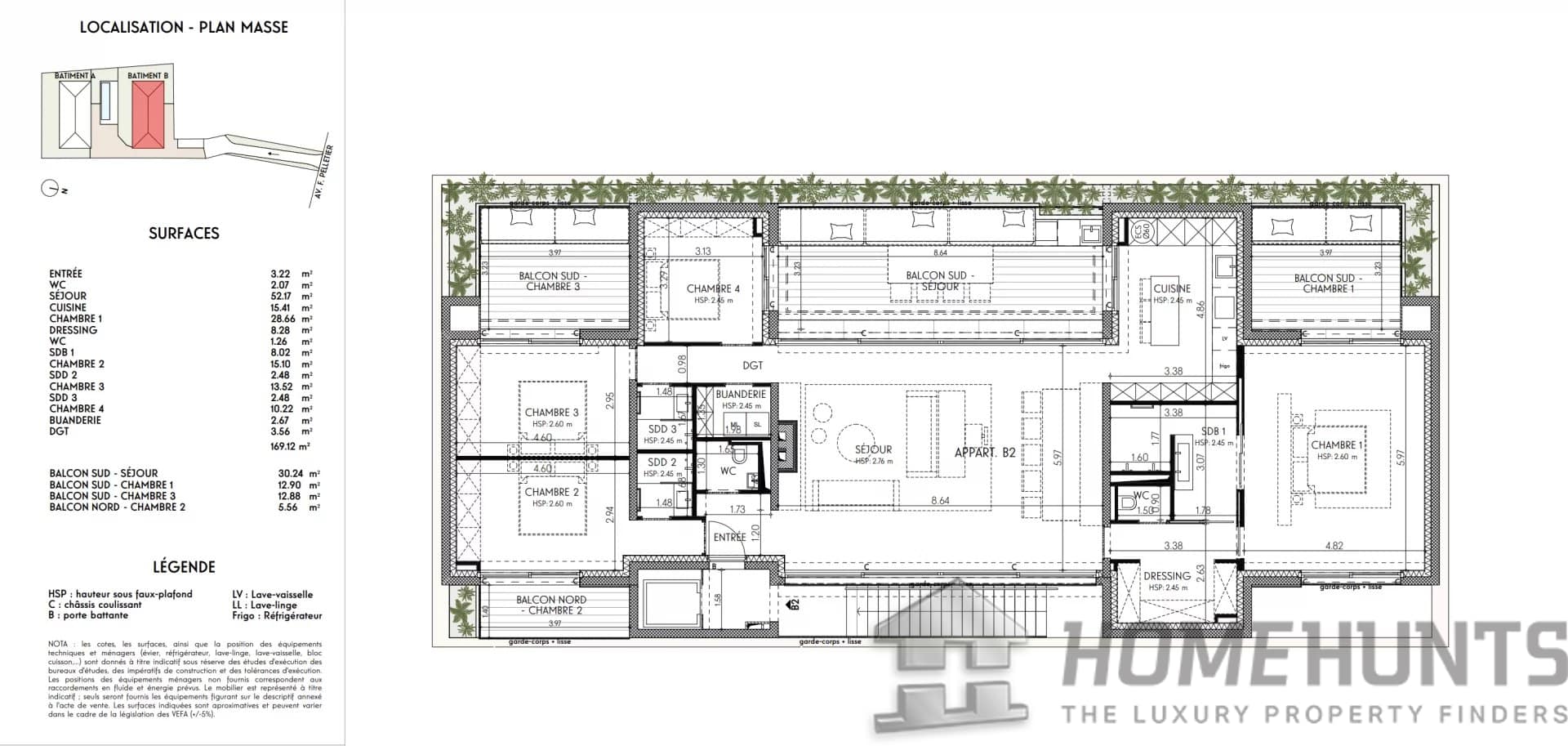The apartments benefit from magnificent terraces extended by private gardens on the lower levels. The residence, built to impeccable standards, also offers underground garages and a shared swimming pool.