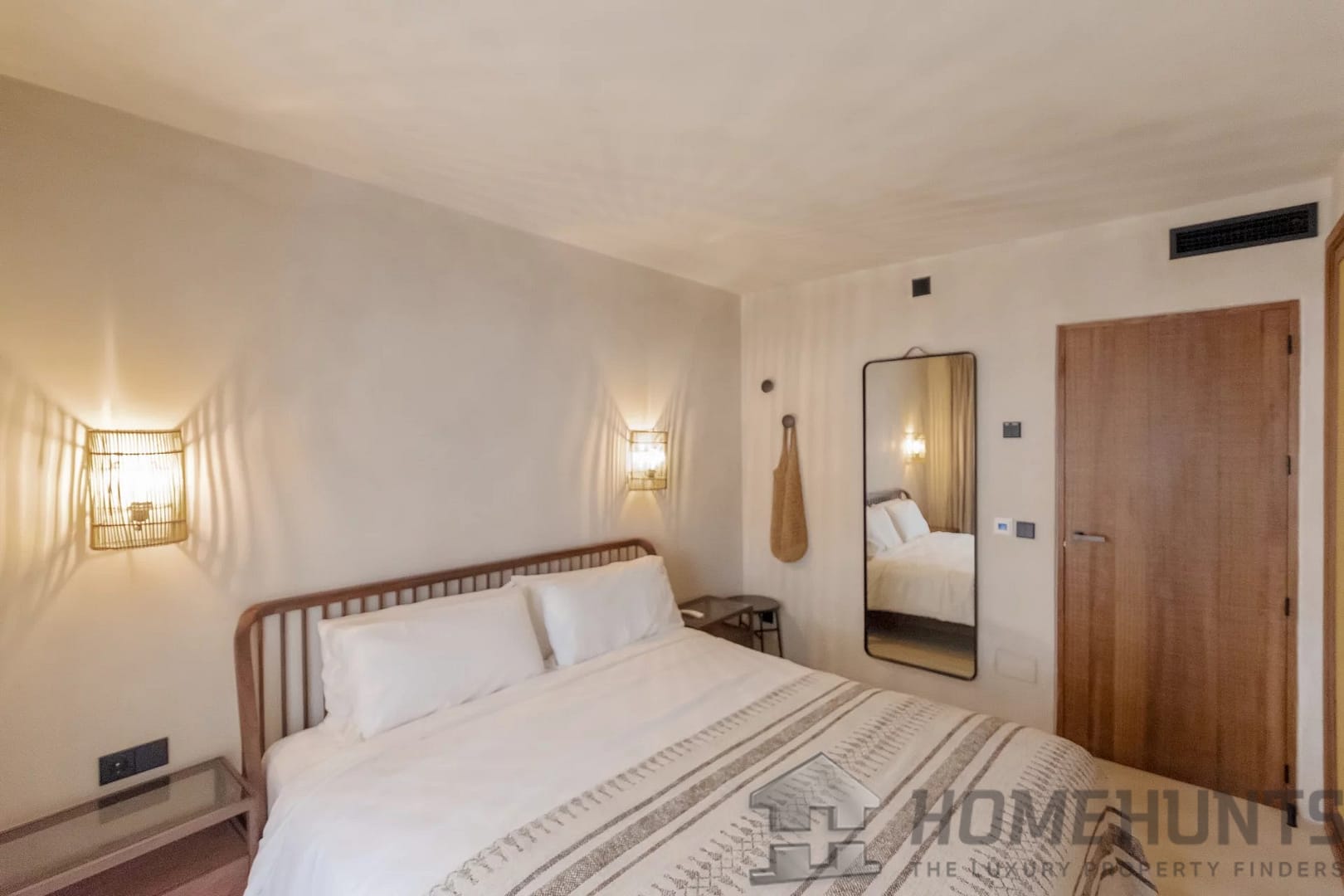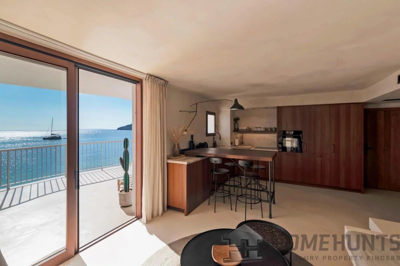 This elegant seafront apartment in Santa Eulalia embodies the essence of modern Mediterranean living.