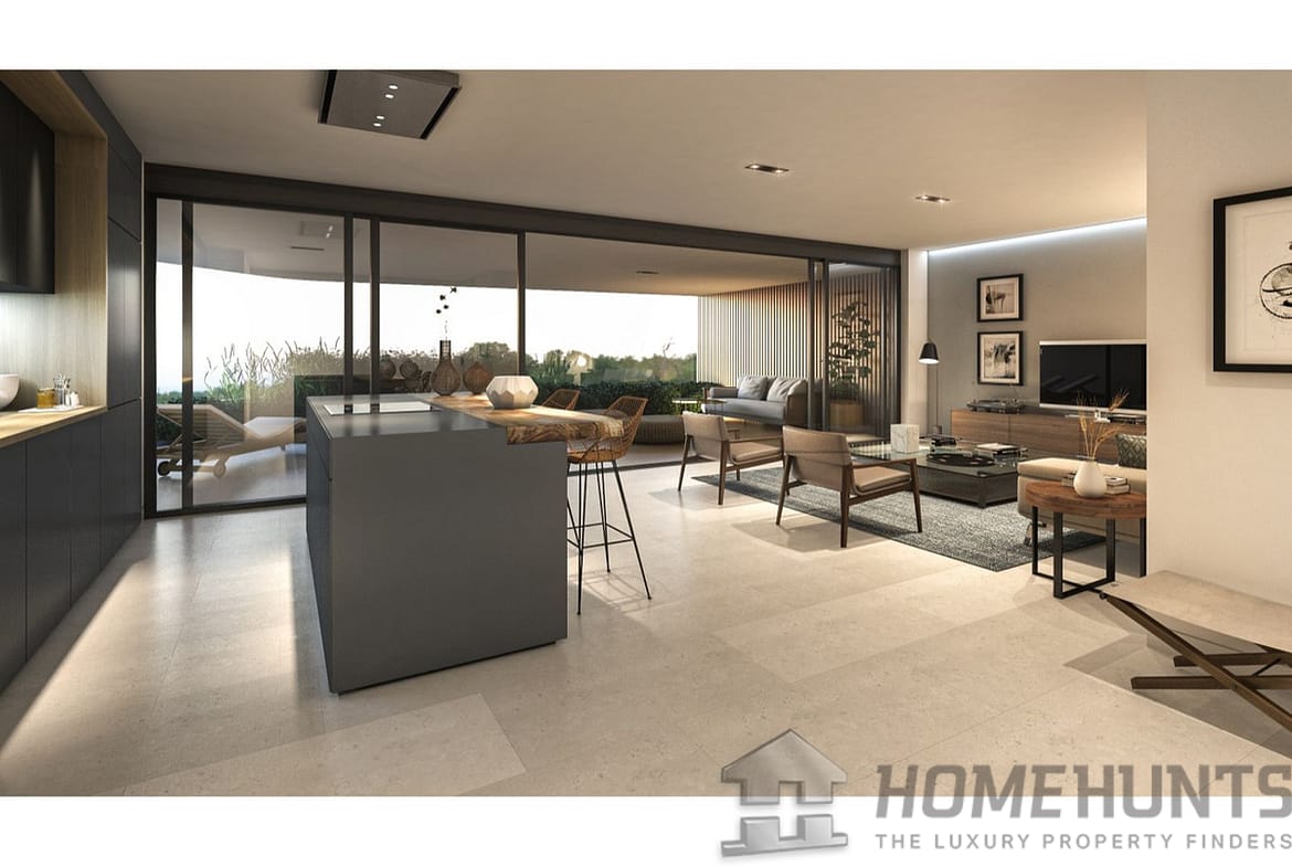 The MODERN SLEEK INTERIORS feature open plan kitchens, large glass doors onto the terraces to let the properties flood with light. There is a spa area including indoor and outdoor pools. This development has been created with community in mind. Central to this concept is our Village Centre, a communal area just for residents. This includes a gym, indoor and outdoor pools, a kid’s pool and a spa area.