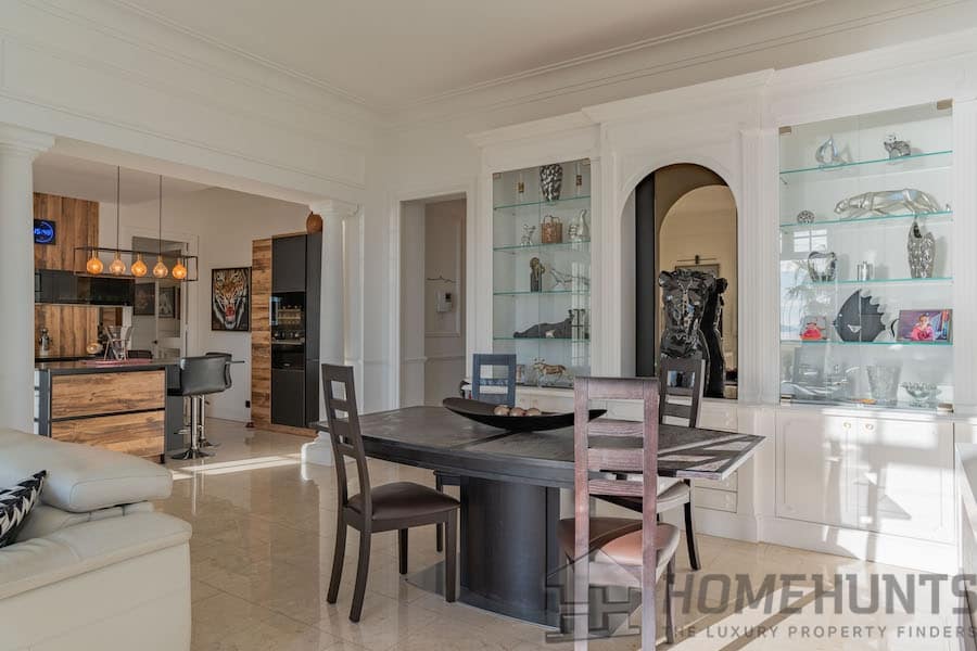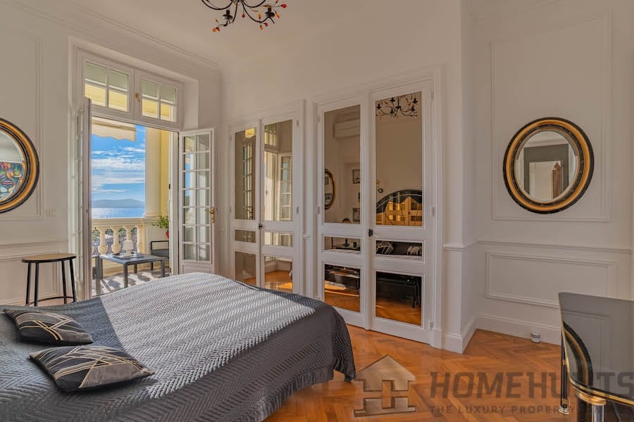 This historic residence, dating back to 1883, stands out with its apartments featuring high ceilings and traditional oak parquet flooring laid on joists. On the second floor, this 141 m2 apartment, the sole residence on its landing, offers a 53 m2 living room with an open kitchen and panoramic sea views, extended by a 24 m2 terrace equipped with a dedicated kitchen area for preparation and cooking. The three 16 m2 bedrooms, each with private en-suite facilities, are enhanced by custom-built storage solutions. The refined decoration and immaculate condition of the property reflect meticulous care.