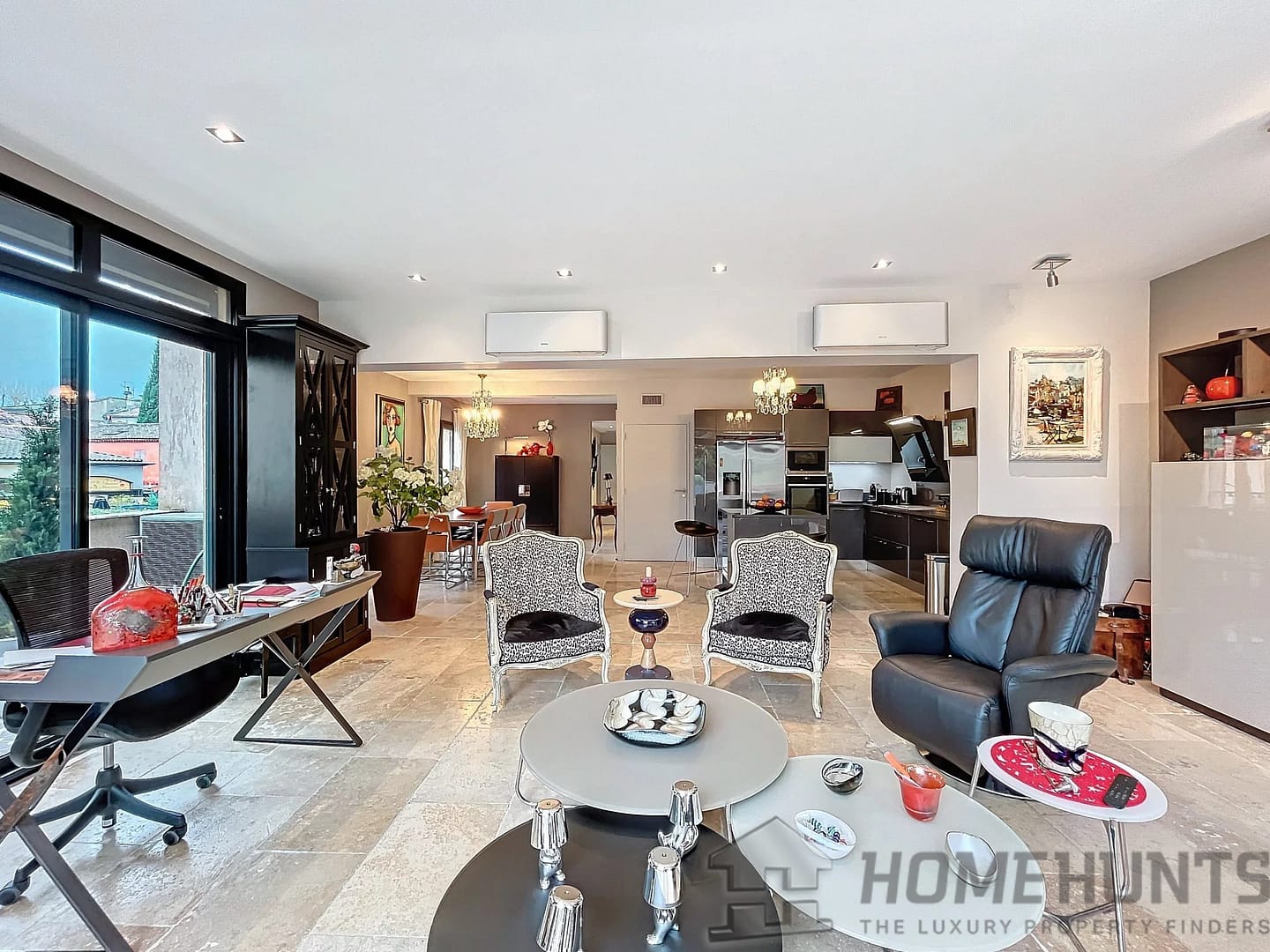 The bright living room comprises a fitted kitchen, dining room and lounge, opening onto a wooden terrace with no overlooked neighbours, a jacuzzi and uninterrupted views of the Alpilles.