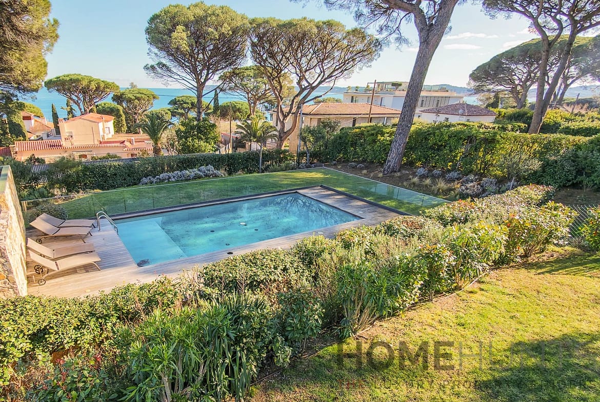 In a recent and gated residence with swimming-pool, this apartment is located in a corner, facing South-East. The terraced-lawn garden offers a nice view on the sea and the village of Sainte-Maxime.