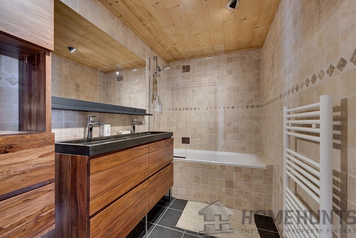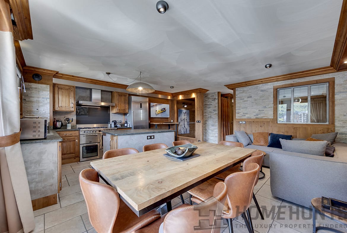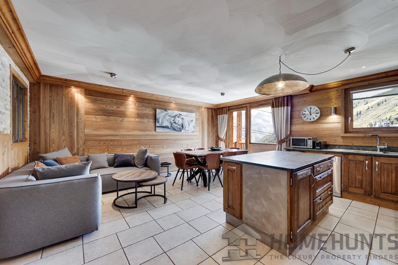 The apartment also features two large balconies where you can enjoy views of the surrounding mountains and Lake Chevril.