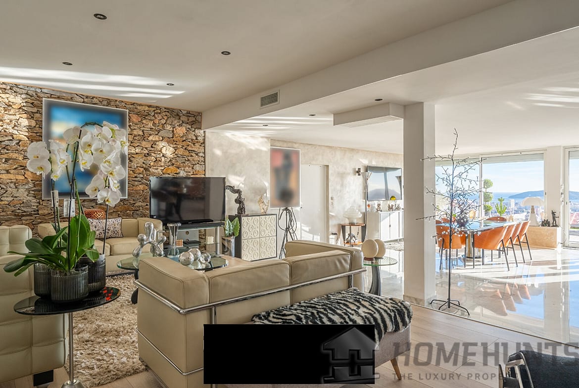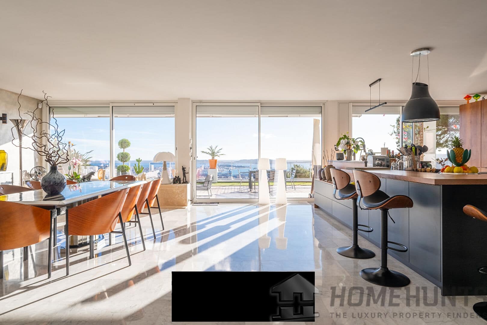 Located on the heights of Toulon, this renovated apartment with a living area of 213 m2, offers one of the most beautiful sea views in the area.