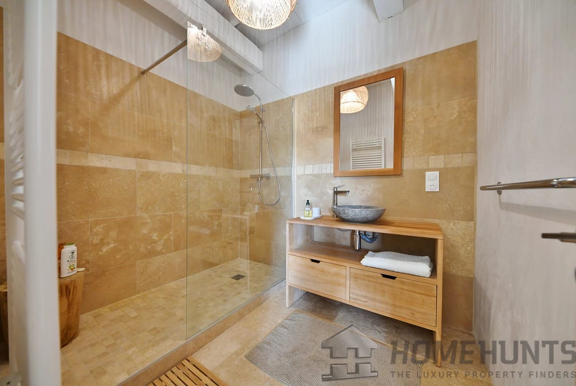Back on the ground floor, a separate bedroom with a dressing room and bathroom completes the property. The latter, with its own separate entrance, allows you to welcome your friends in complete privacy.