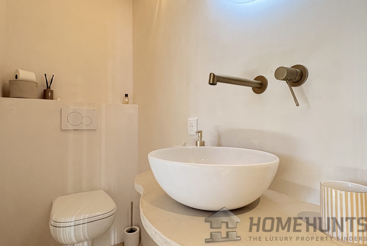 The first floor consists of a bedroom with en-suite bathroom and WC, giving access to a terrace with a splendid view, two further bedrooms each with its own bathroom, a separate WC, as well as a fourth bedroom with en-suite bathroom and WC.