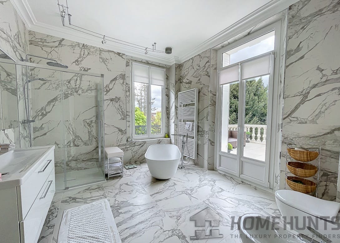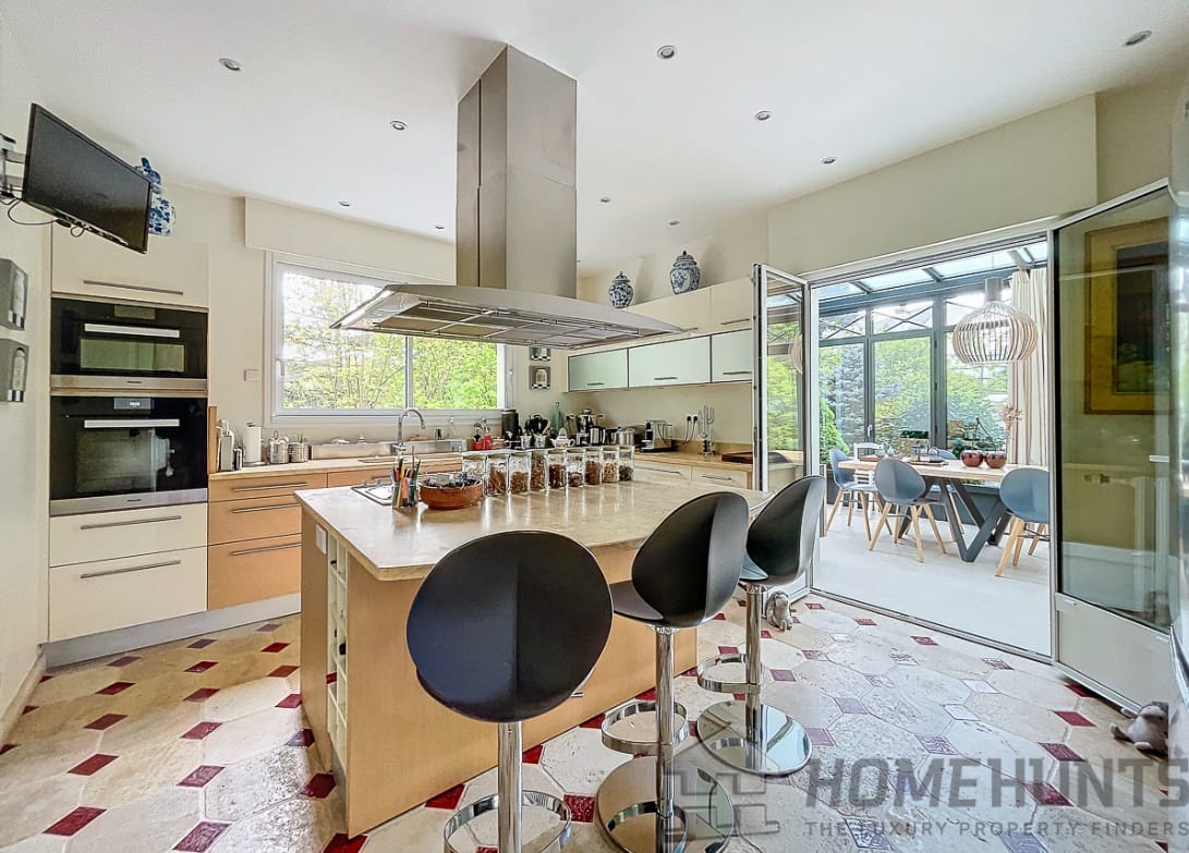 Ideally located between the train station and Fontainebleau town center, just a stone’s throw from the forest and set in 729 m2 of grounds, this beautiful mid-19th century bourgeois house has recently undergone a luxurious renovation designed to seduce the most demanding lovers of beautiful homes.