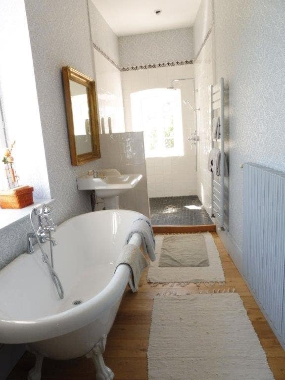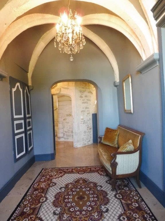 The chateau, very bright, on 3 levels, 2 of which have been entirely restored, has lounges, a reception room, kitchen, offices, bathroom on the ground floor… Numerous original features such as a fireplace, wood paneling and parquet flooring…. The upper floors are accessed via a 15th century stone staircase housed in a tower. The first floor has a master bedroom with shower room and dressing room, plus 6 bedrooms, with 3 shower rooms and a chapel, The top floor can be further developed.