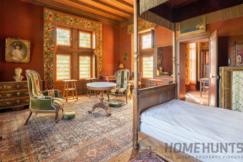 The structure is composed on one side of a High Court, with splendid gardens, towers, a dungeon and other buildings including mysterious underground passages. The other side, the Low Court, has an inhabitable 15th century Manor, rebuilt during the 18th century; it is adorned with side towers, stables and its own chapel.
