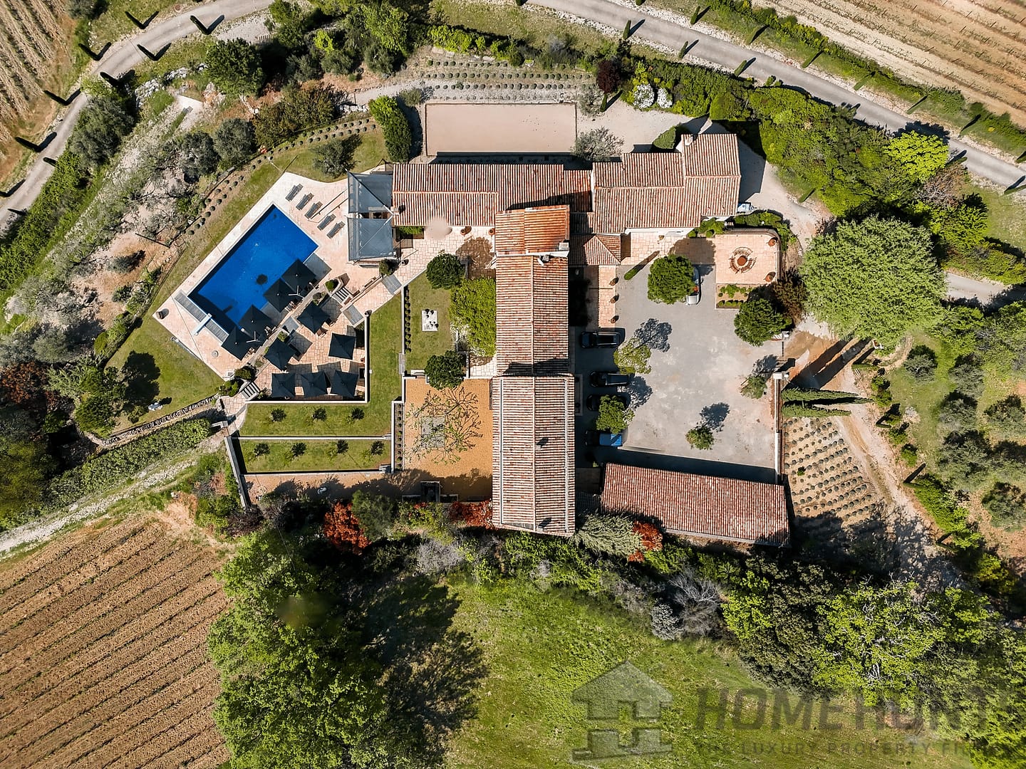 Standing in approximately nine hectares of beautiful grounds, this handsome home comes with around 3 hectares of vines and several beautiful olive groves, as well as formal gardens with many terraces and a stunning, heated pool area.