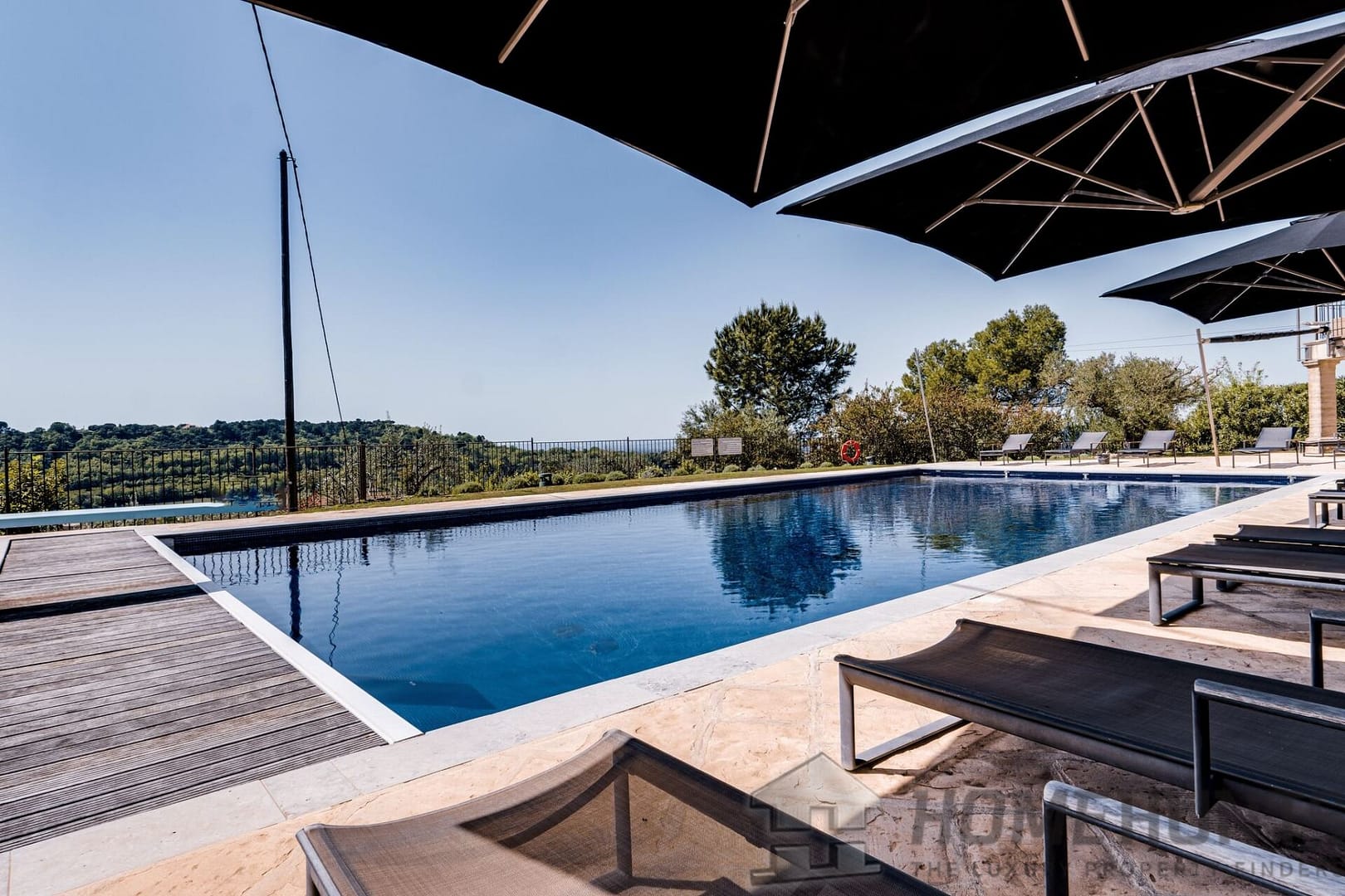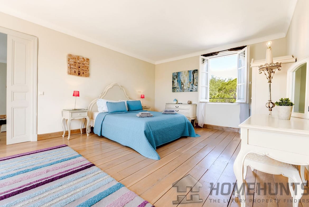 There is approximately 1,200m2 of light and bright living space in total with eleven bedrooms in the main part of the property (nine are ensuite) including two impressive master suites, plus a one bedroomed self-contained guardian house. There are several reception rooms, including a large provencal dining kitchen, formal dining room, double living room with open fireplace and a wonderful, panoramic sunroom that takes in the stunning views. All reception rooms open onto the landscaped terraces, gardens and pool area.