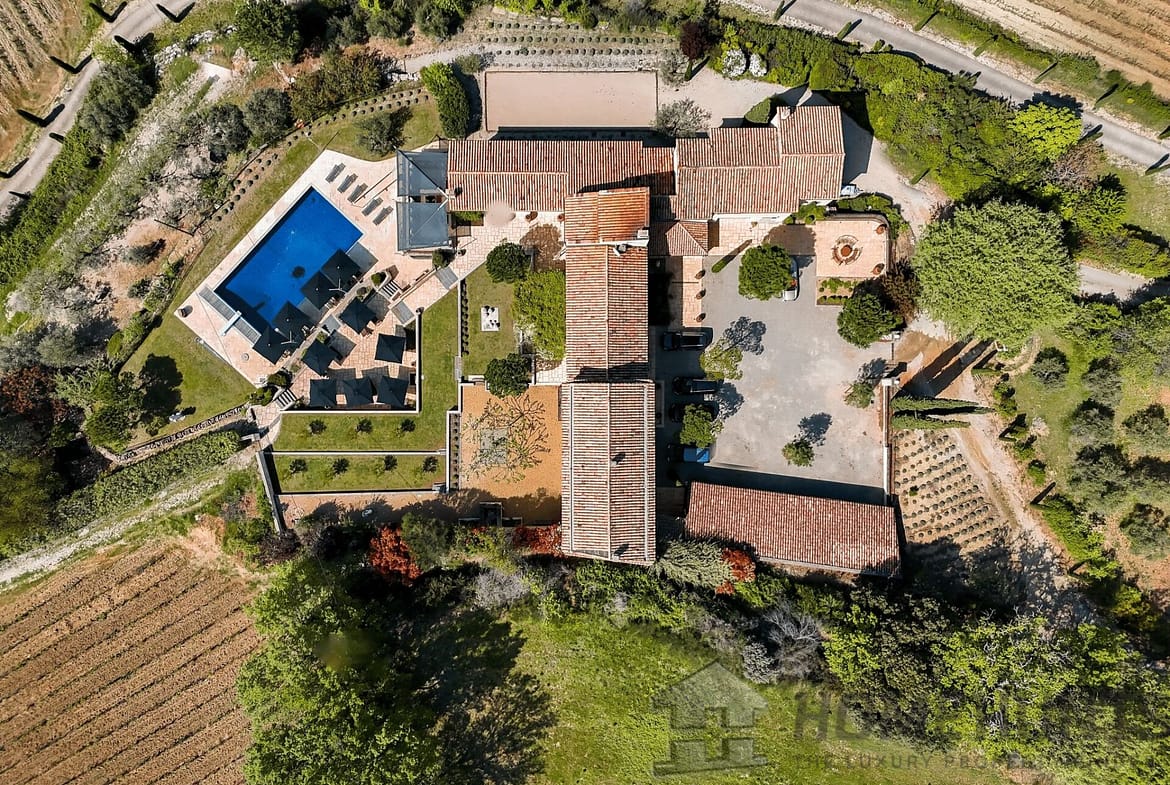 Standing in approximately nine hectares of beautiful grounds, this handsome home comes with around 3 hectares of vines and several beautiful olive groves, as well as formal gardens with many terraces and a stunning, heated pool area.