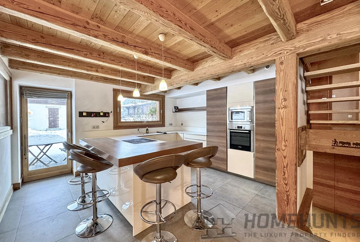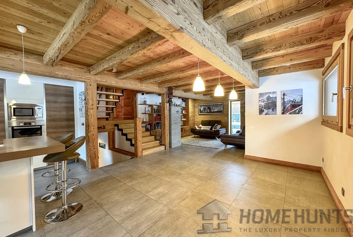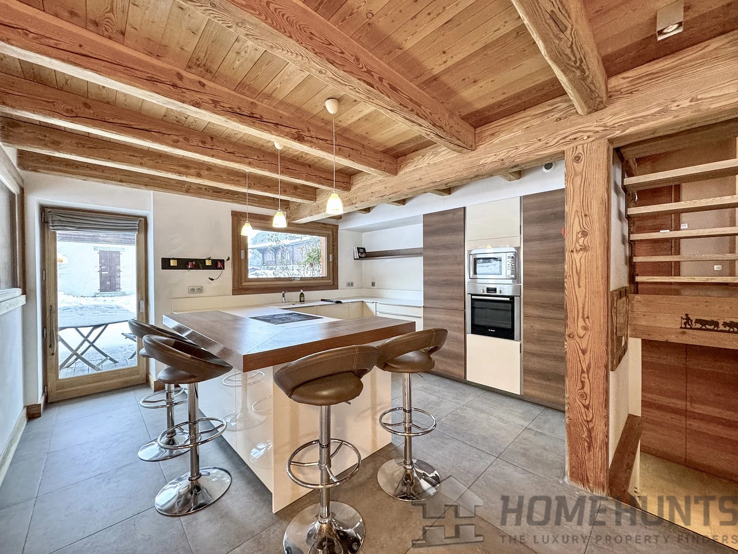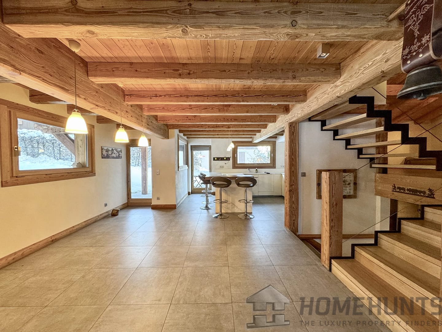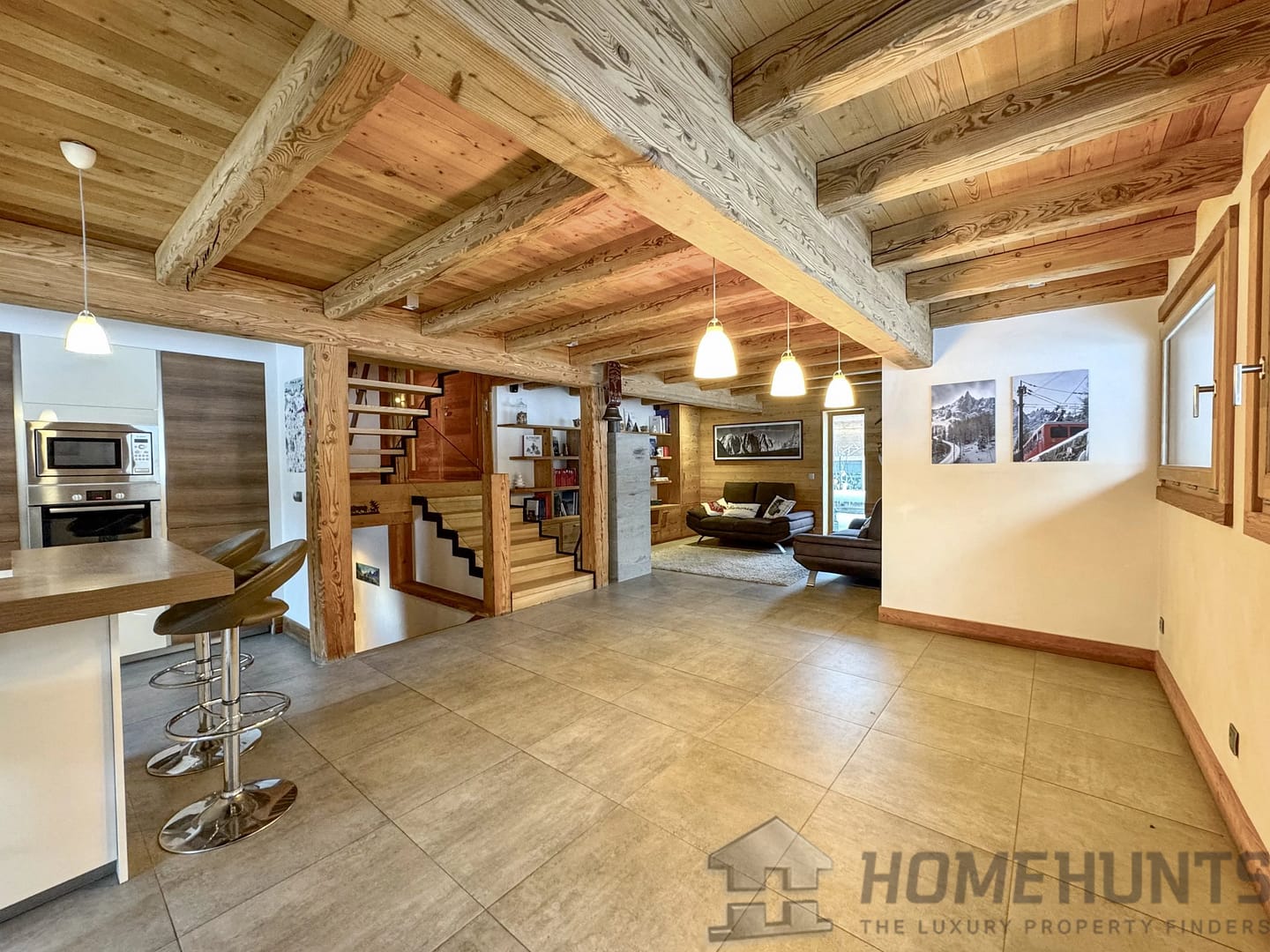Chamonix Mont-Blanc, individual chalet offering stunning views of the entire Mont Blanc range. The chalet features an entrance with storage, a spacious living and dining area with an open, fully equipped kitchen opening onto terraces and the garden.