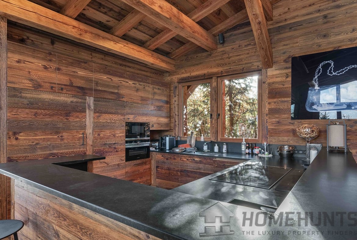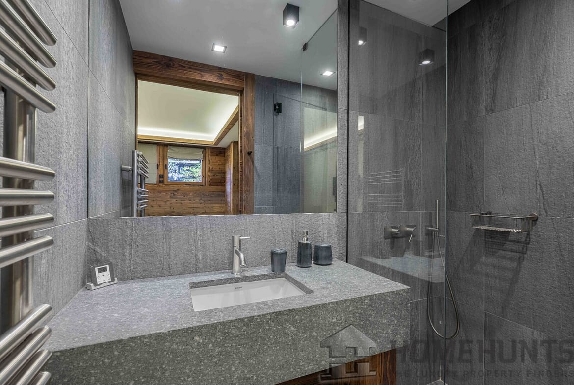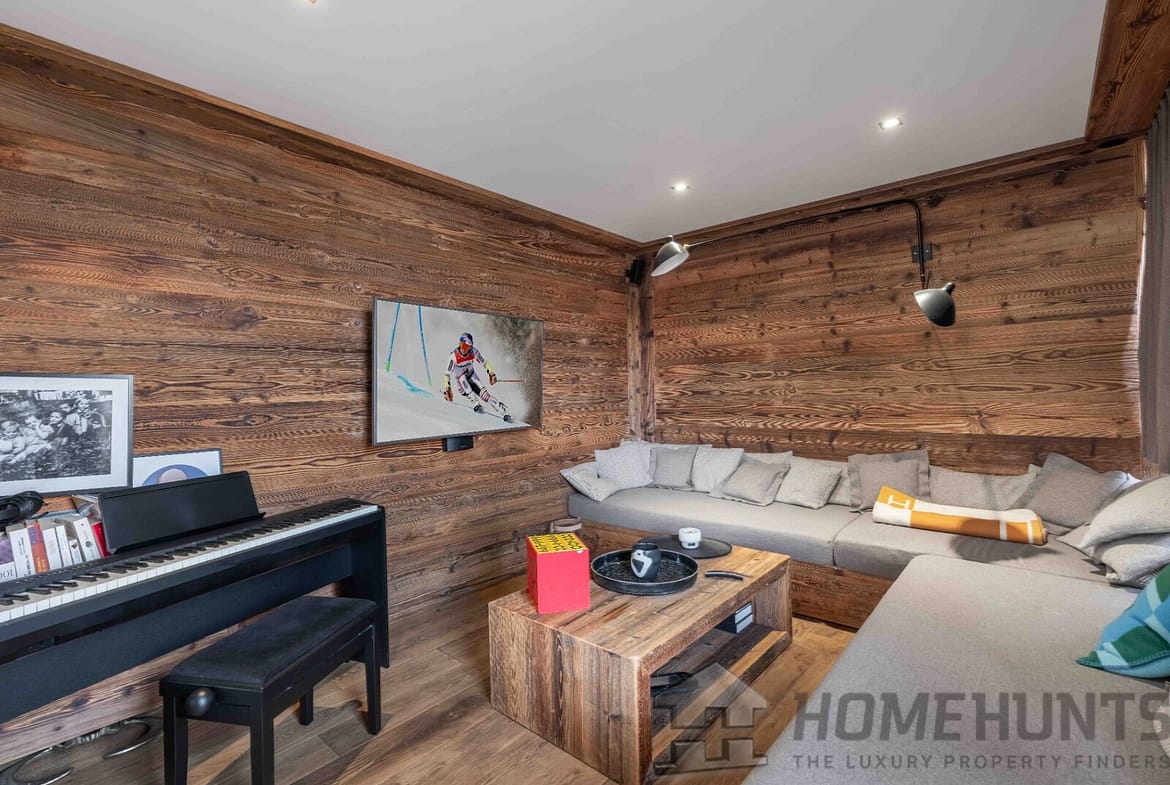 Designed for family and guests alike, the chalet offers six bedrooms including a sumptuous master suite with en suite bath and shower. Three additional en suite bedrooms occupy the garden level, while a charming dormitory-style suite with its own shower room crowns the top floor.