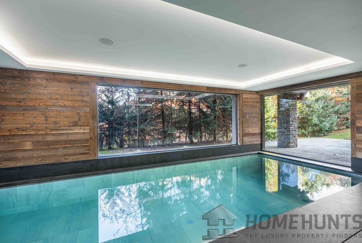 Dedicated entirely to well-being, the lower level invites relaxation with an indoor swimming pool, hammam, sauna, and fitness area—your private alpine spa for après-ski serenity or year-round wellness.